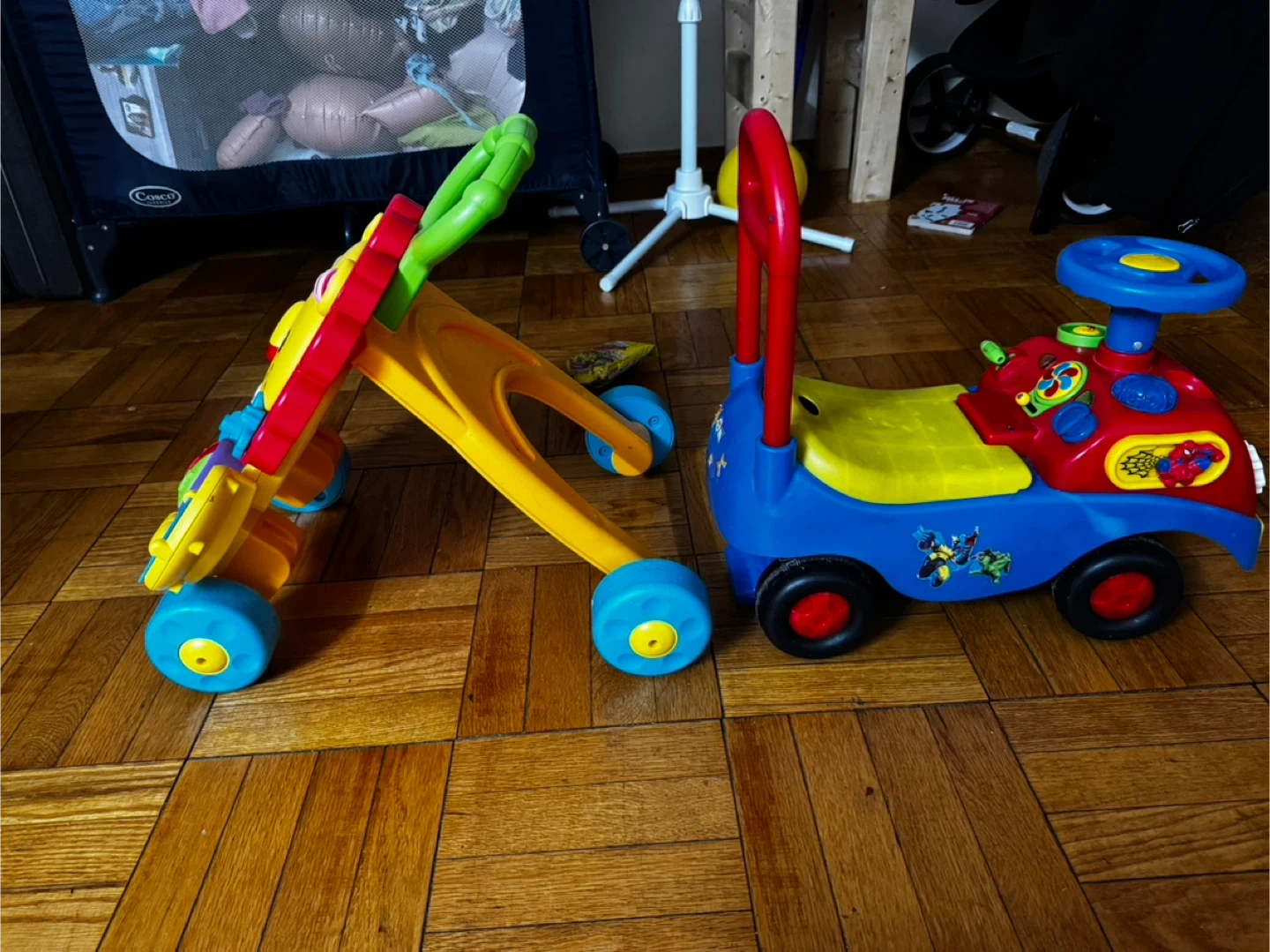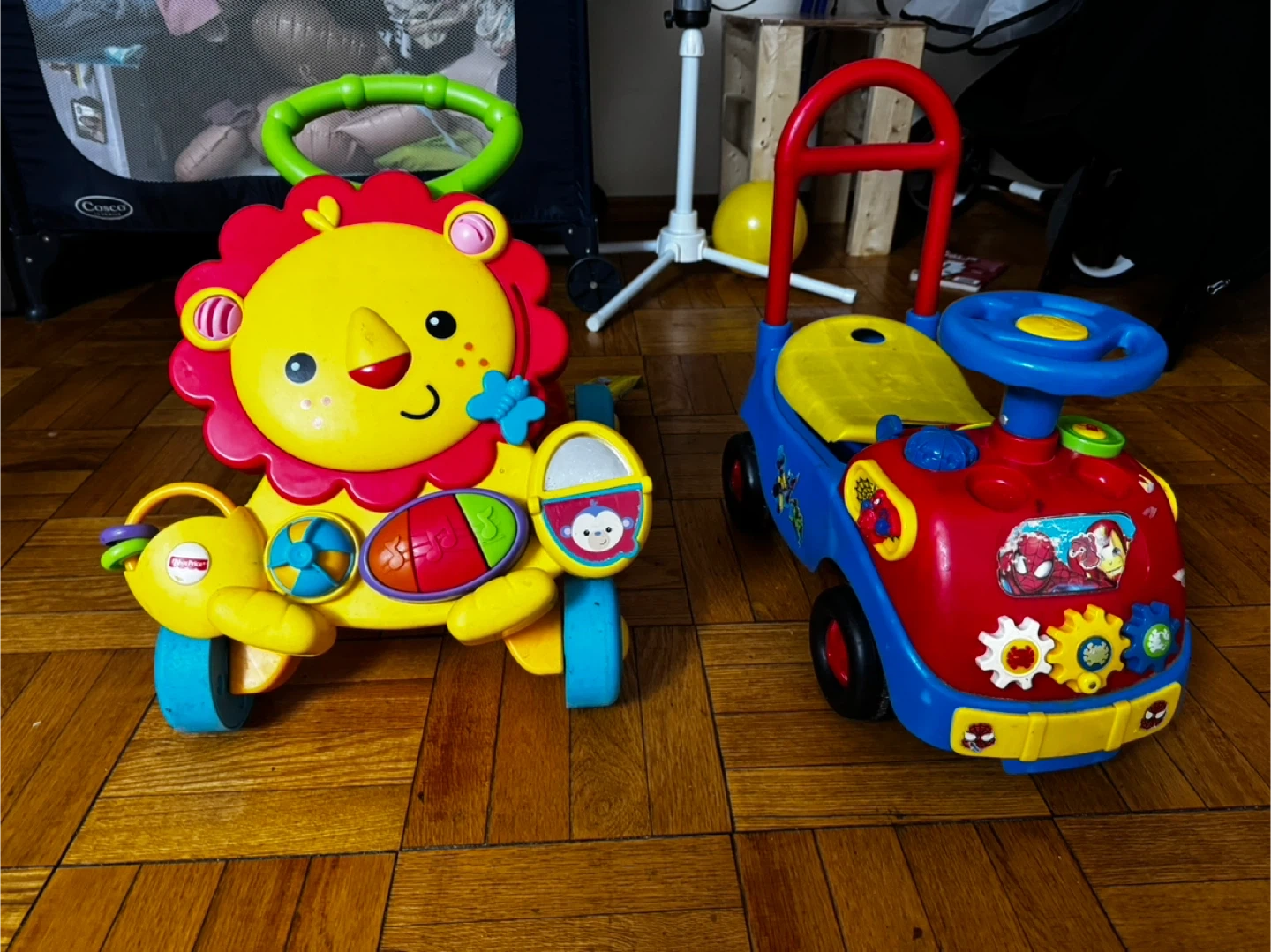 .Selling a Fisher-Price Lion Walker and a ride-on car! The lion walker is perfect for little ones learning to walk, and the ride-on car is great for toddlers who are ready to scoot around. Both are in good used condition and ready for a new home