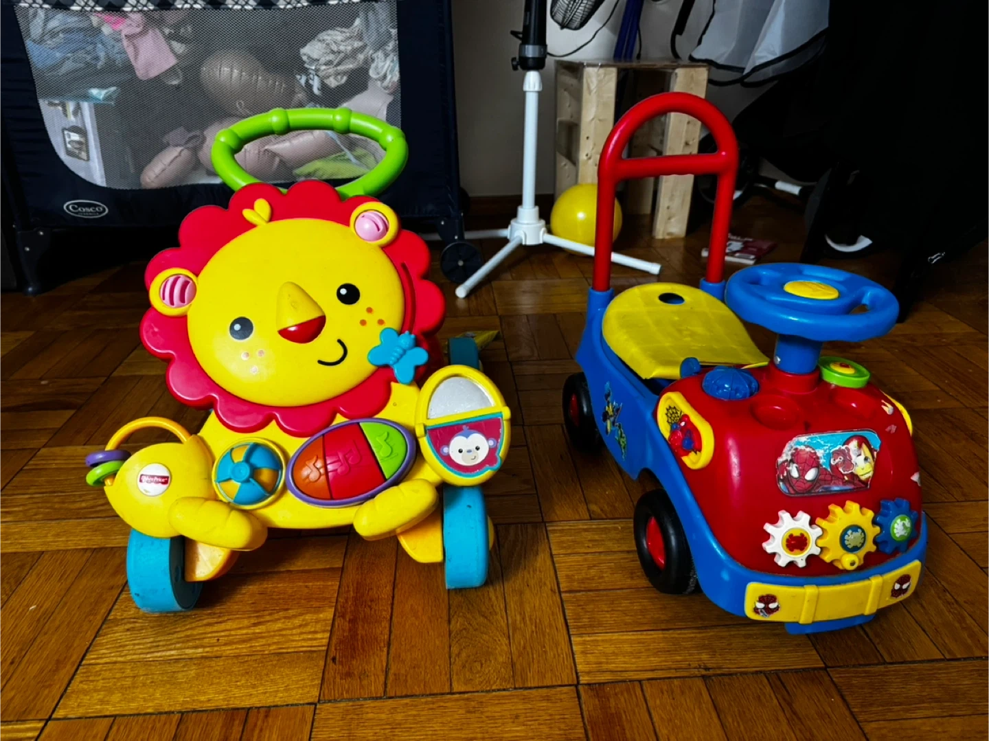 .Selling a Fisher-Price Lion Walker and a ride-on car! The lion walker is perfect for little ones learning to walk, and the ride-on car is great for toddlers who are ready to scoot around. Both are in good used condition and ready for a new home