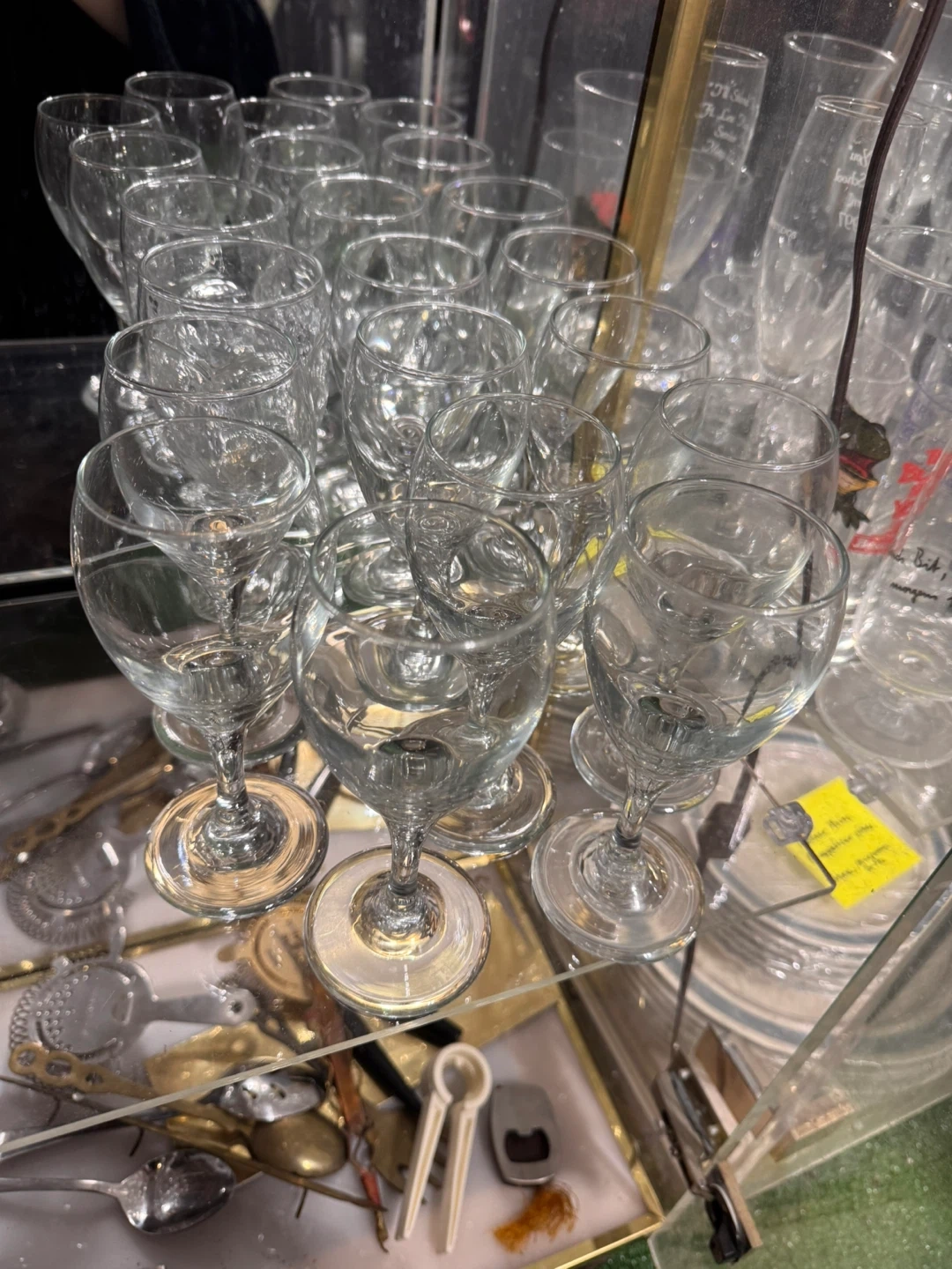 Buy & SellSet of 8 Clear Wine GlassesSet of 8 Clear Wine Glasses$2Each $2 or all for $10 This is a set of clear wine glasses. They are made of glass. Use these for serving wine or other beverages.WHERE TO MEETShorehavenView MapSELLERverifiedBrendaClason Point27922 reviews0 chats·0 favorites·3 viewsSEND CHAT TO SELLERHi Brenda! I’m interested in your listing.Hi Brenda! I’m interested in your listing.Get the Karrot app to chatSign In to chat