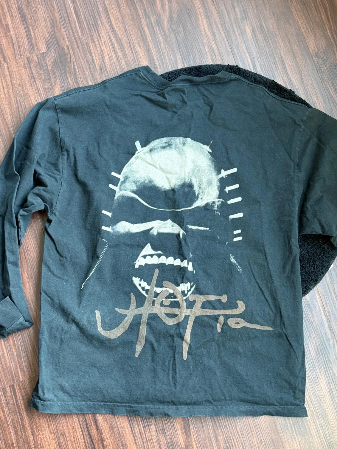 Selling a Travis Scott x Cactus Jack HOF long-sleeve t-shirt in size XL. It's in great condition and made of 100% cotton. The design features graphics on the front and back. Perfect for any Travis Scott fan!