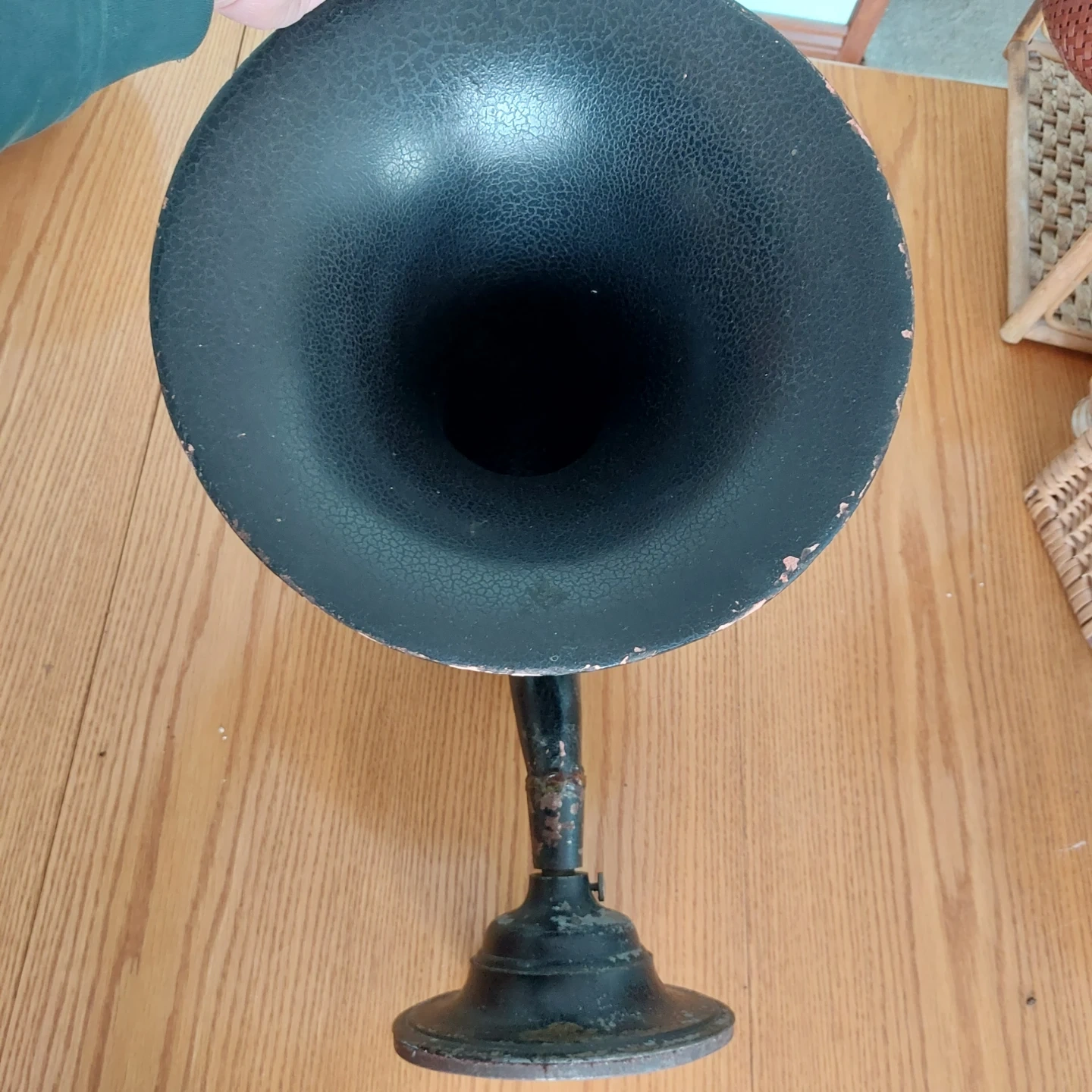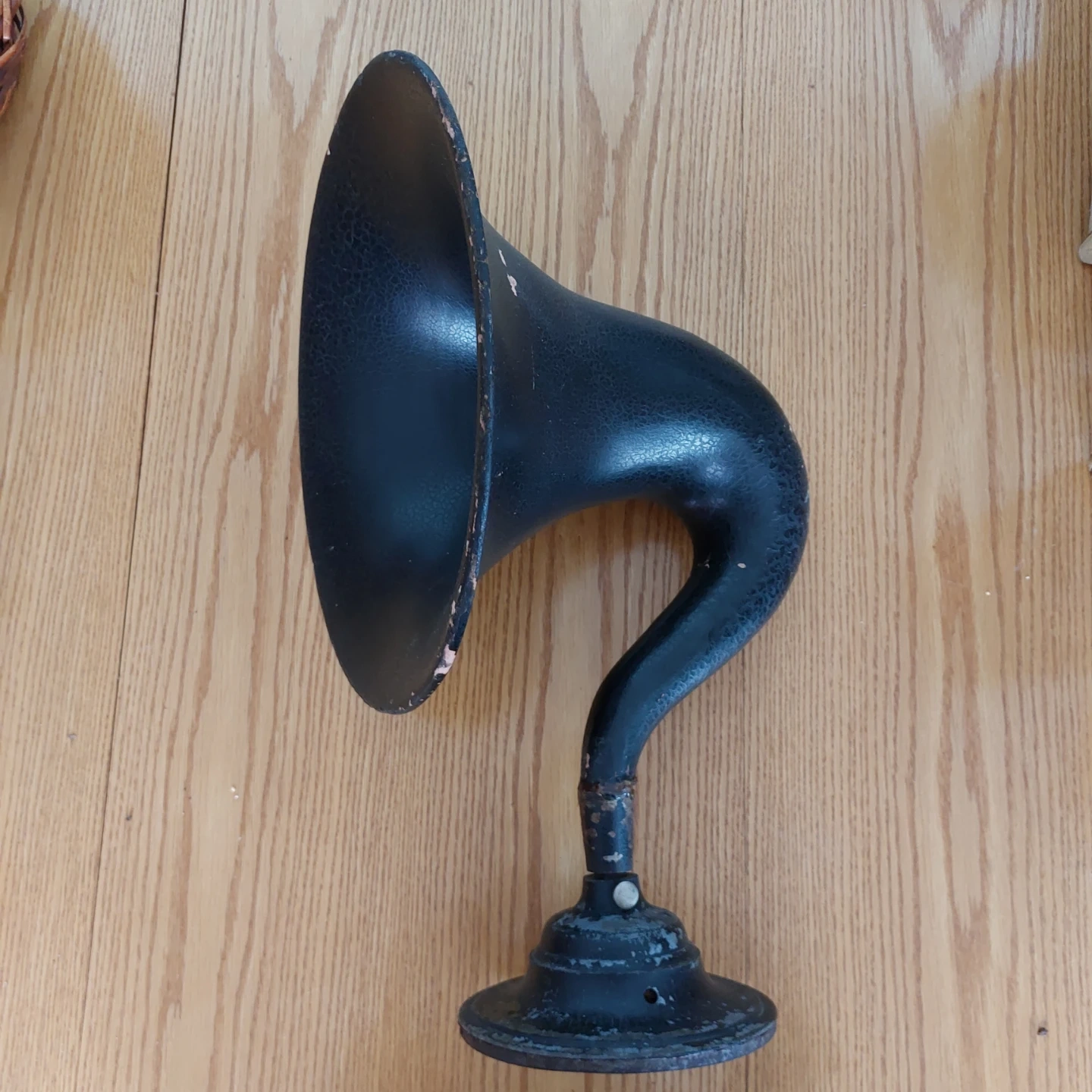 Vintage Nathaniel Baldwin horn speaker from Toronto, Canada. Black horn with a textured finish. It's an original piece with some signs of wear. This horn is a classic audio component missing cord