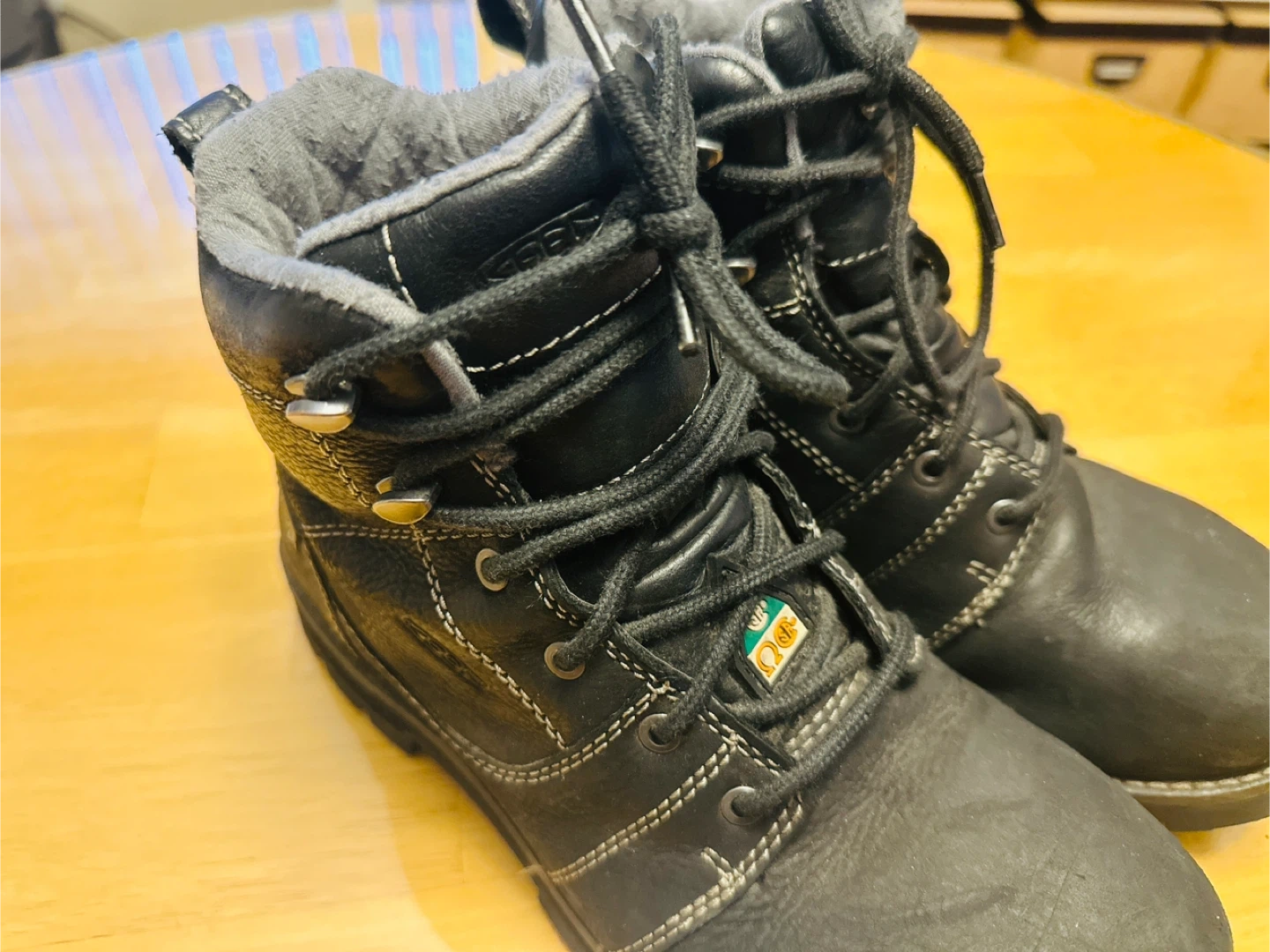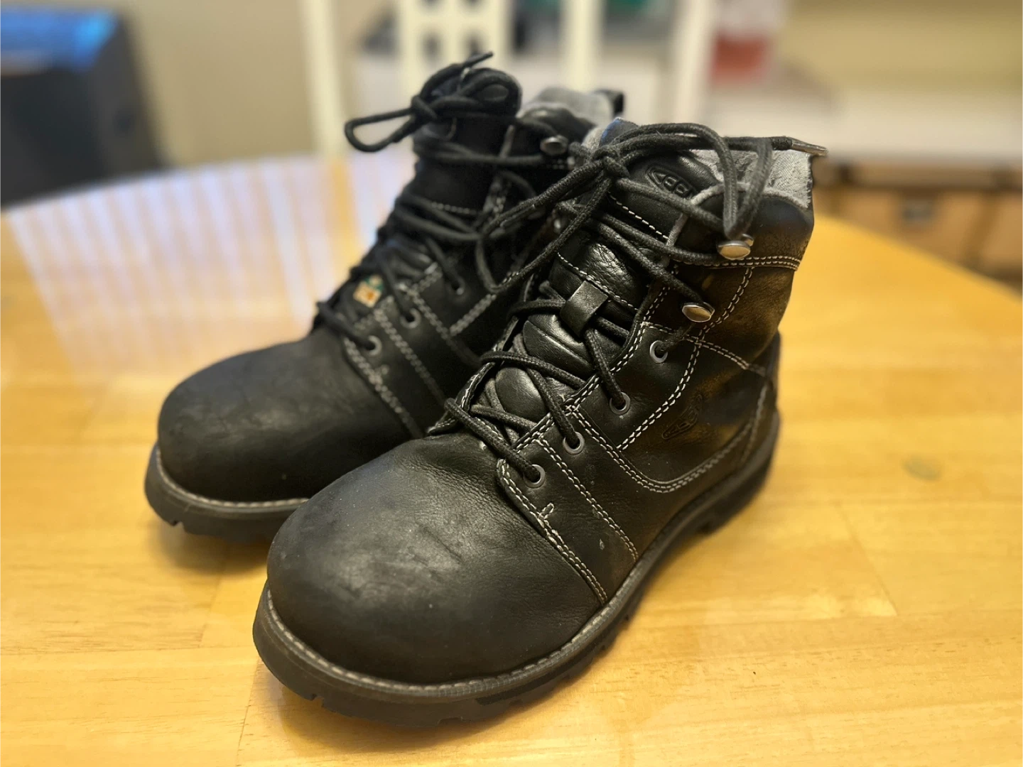 Selling a pair of KEEN Utility work boots in size 8M. These boots are CSA-approved and designed for work environments that require sole puncture protection and safety toe for impact resistance. They are black and appear to be in good condition!
