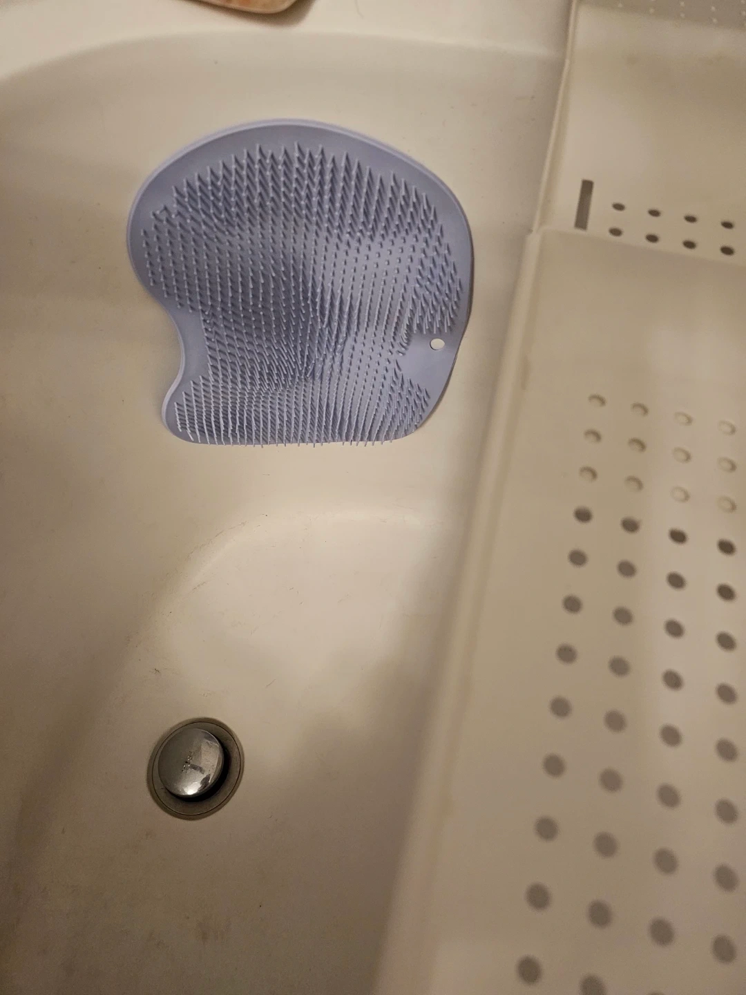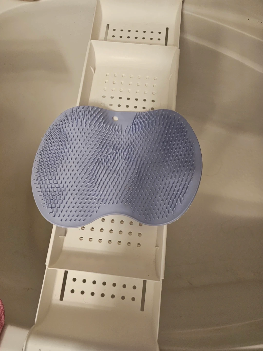 This is a blue silicone foot scrubber and massager.