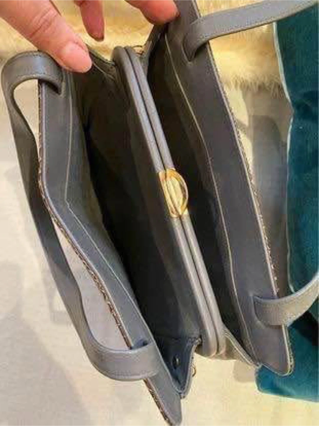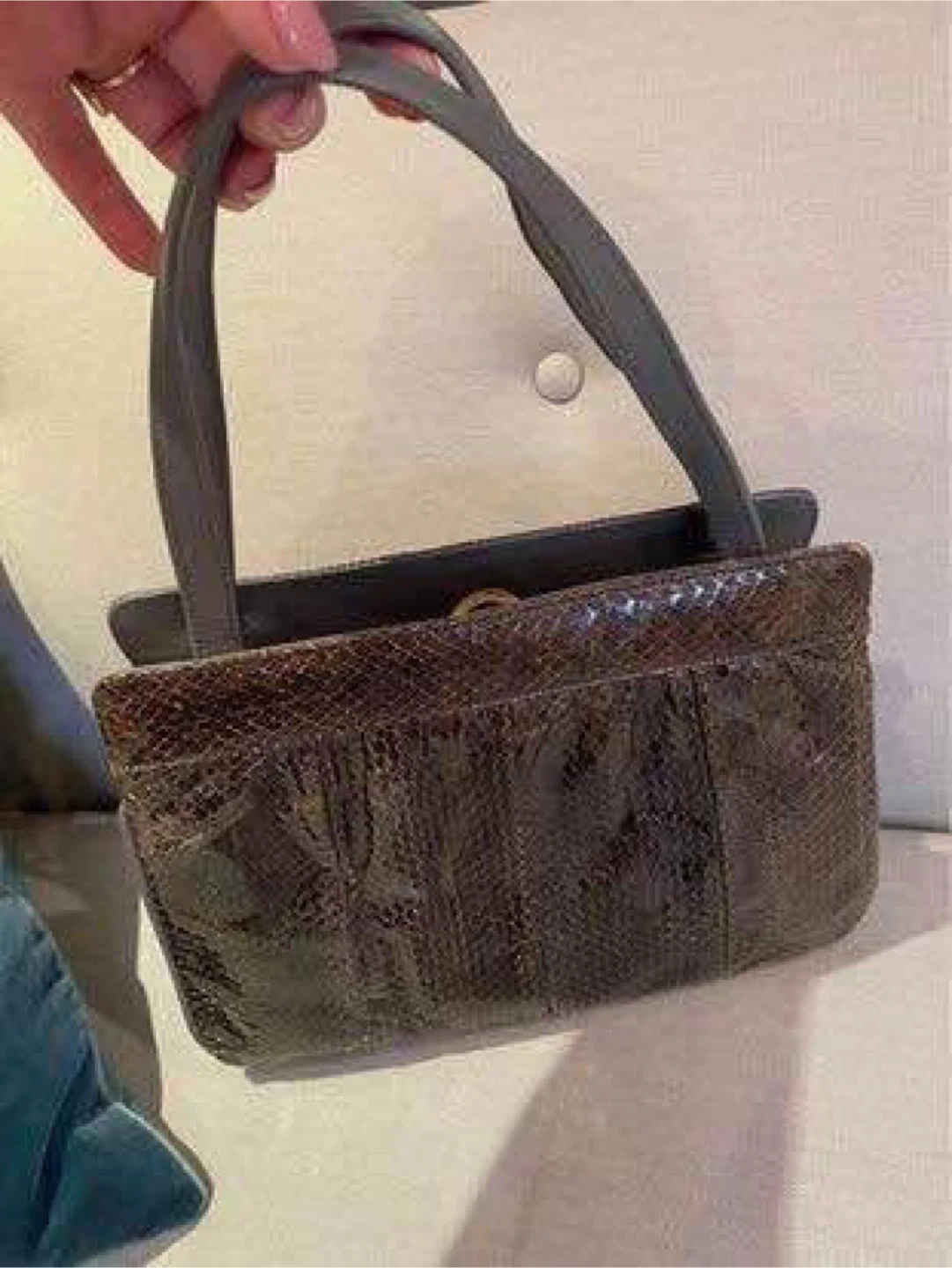 Vintage Snakeskin & Grey Leather Top Handle Handbag