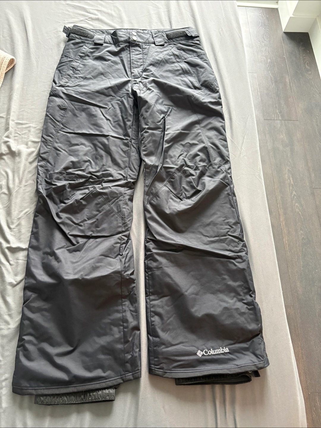 Black snow pants. Water resistant. Good condition, only wore a couple of times. Moving aboard, no need anymore.