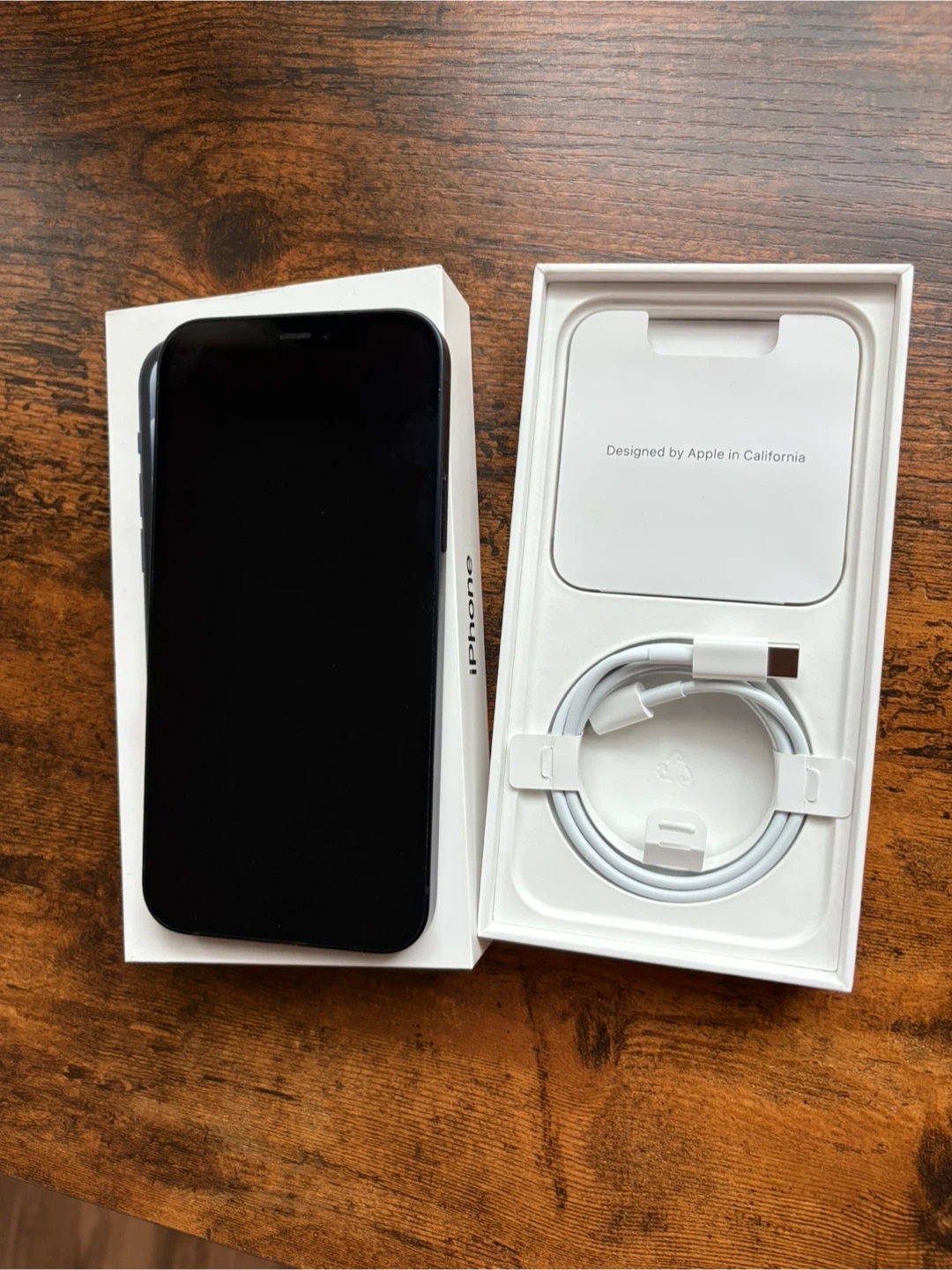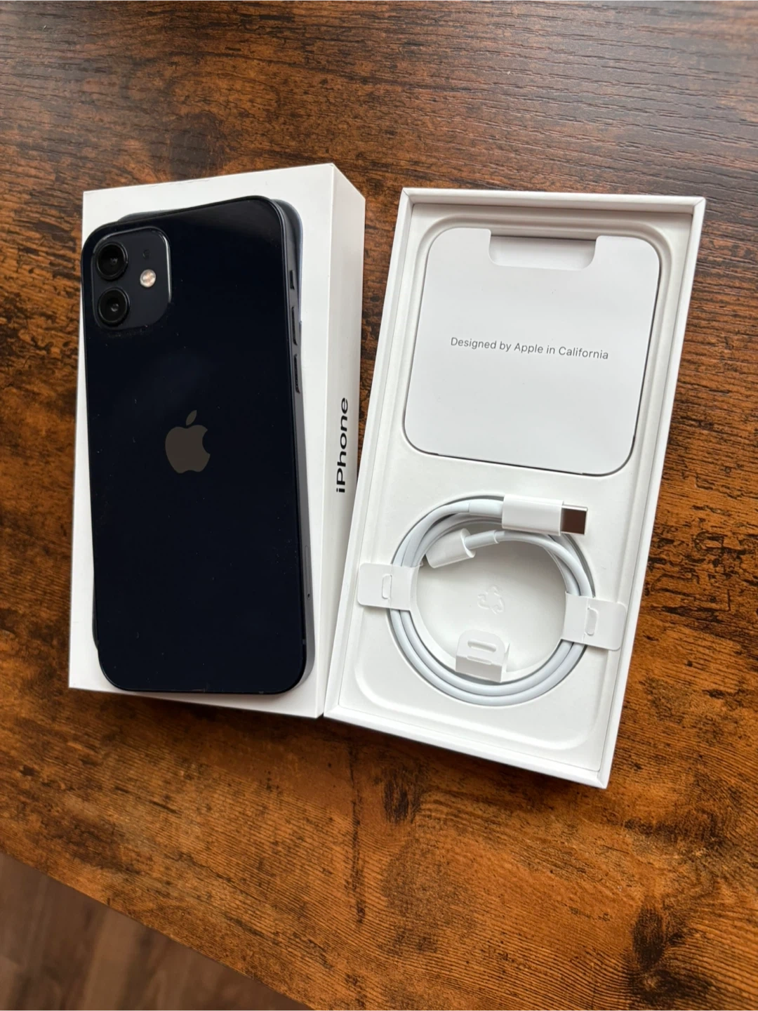 Apple iPhone 12 in black with 64GB storage. Comes with original box and charging cable. Designed by Apple in California.
