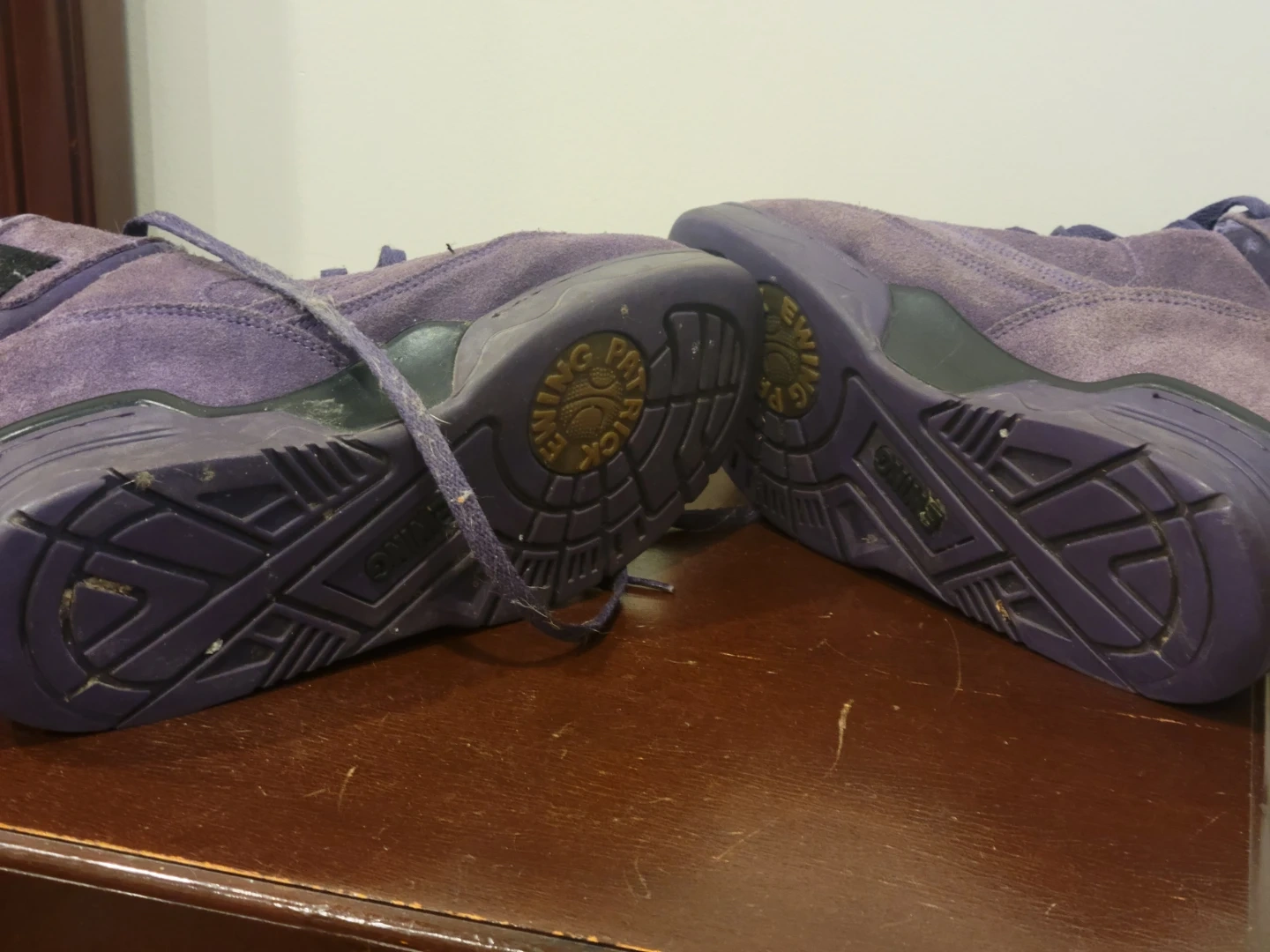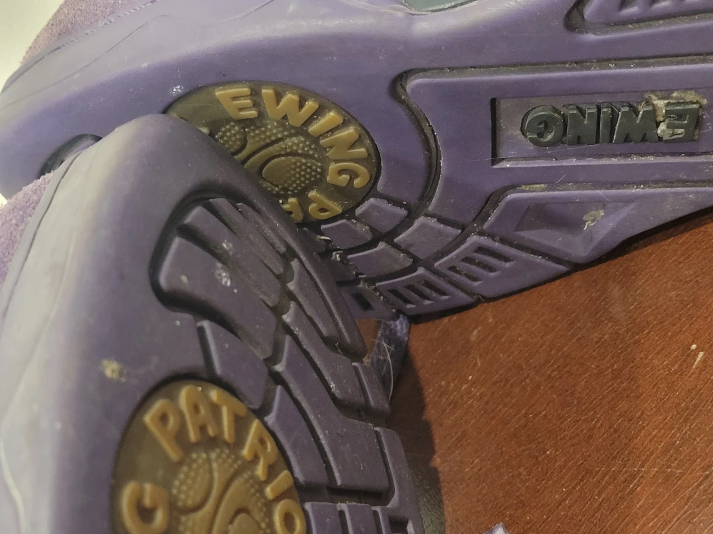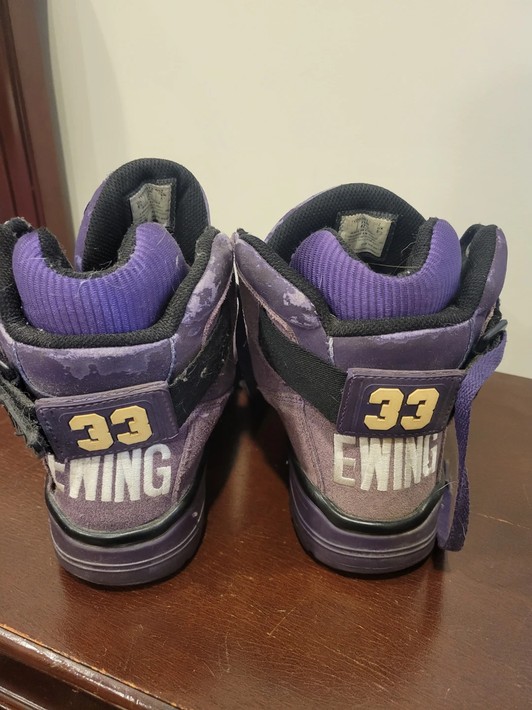 Ewing Athletics 33 Hi basketball shoes in purple. Men's US size 9 1/2, EUR 42 1/2, UK 8 1/2. Leather and synthetic upper with rubber sole. Patrick Ewing's used condition needs a wipe down meetup location eglinton and dufferin area