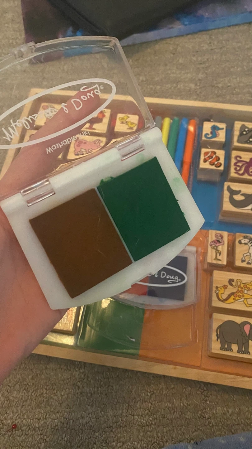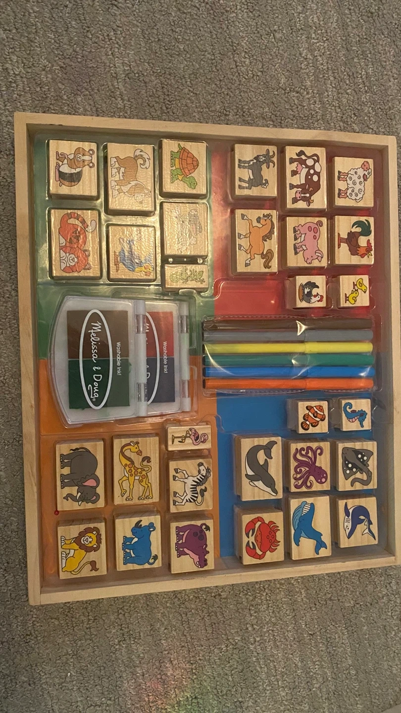 This Melissa & Doug stamp set includes wooden animal stamps and two ink pads. It also comes with markers and a wooden storage tray. It's great for creative play and storytelling for kids!