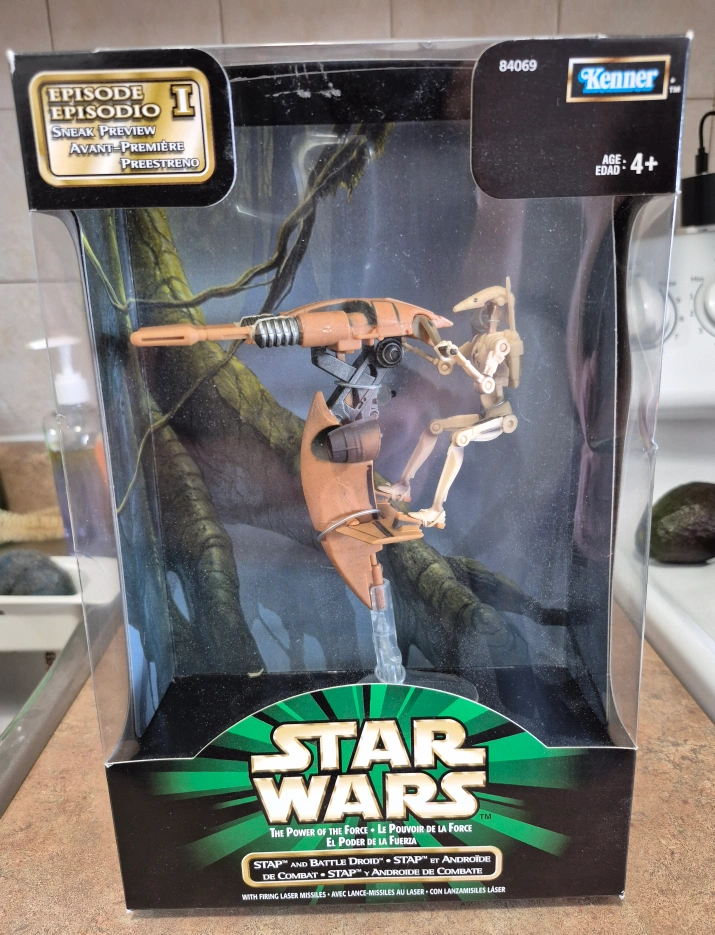 Kenner Star Wars Episode I collectible. Features STAP and Battle Droid. Firing laser missiles. New in box.