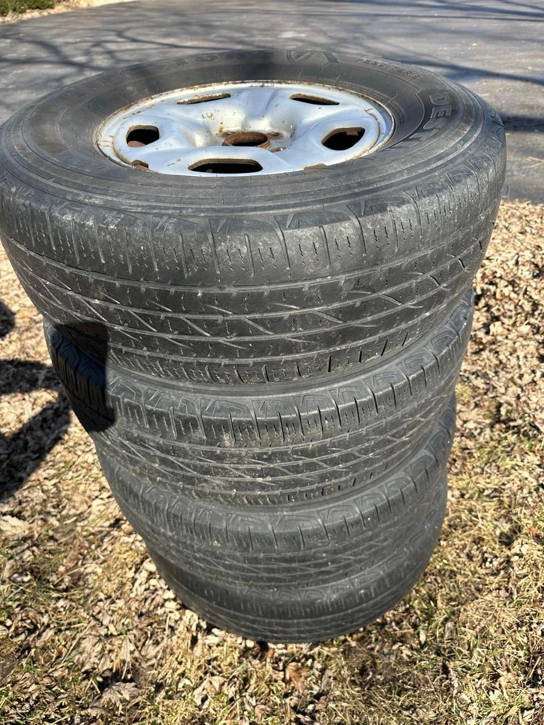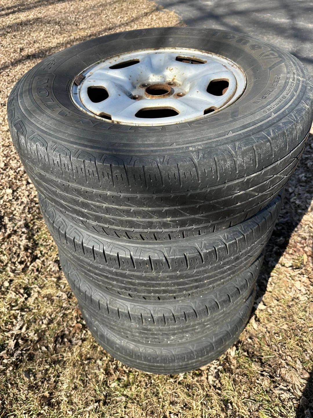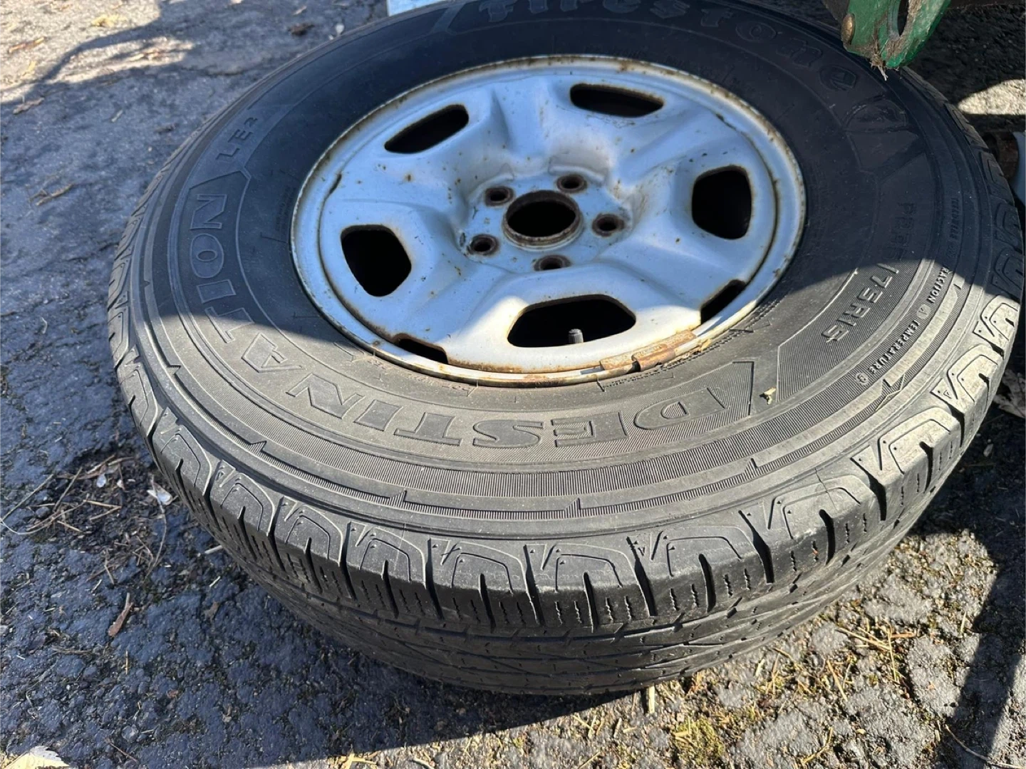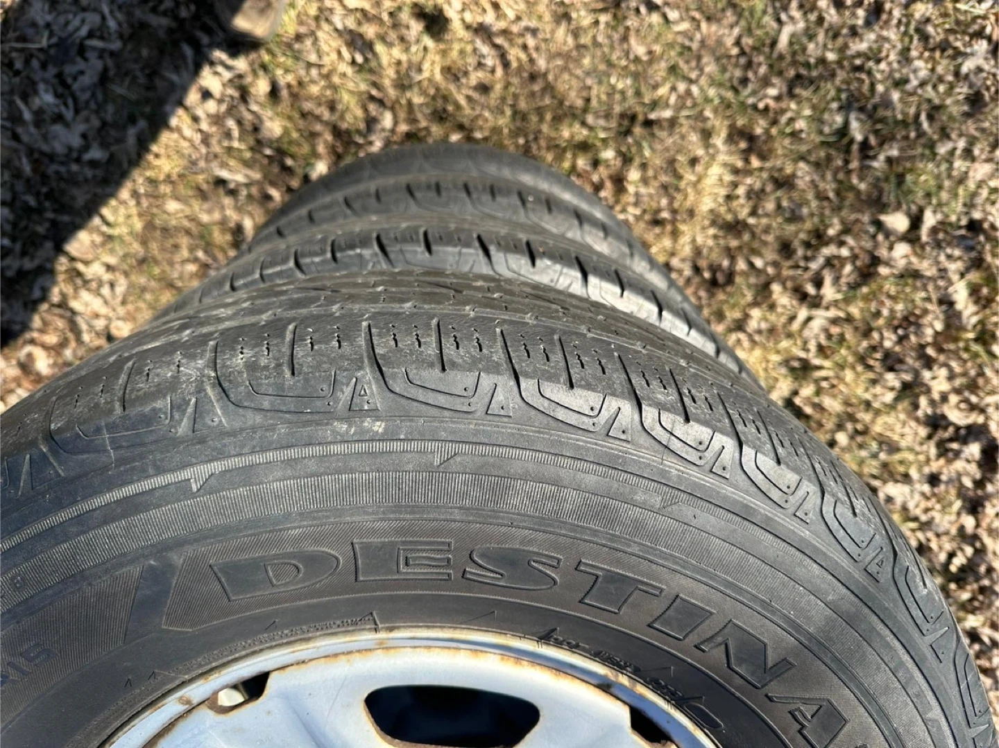 This listing includes a set of four Destinata brand tires, each with a metal rim. They appear to be in good condition .These tires are ready for their next life on the road!