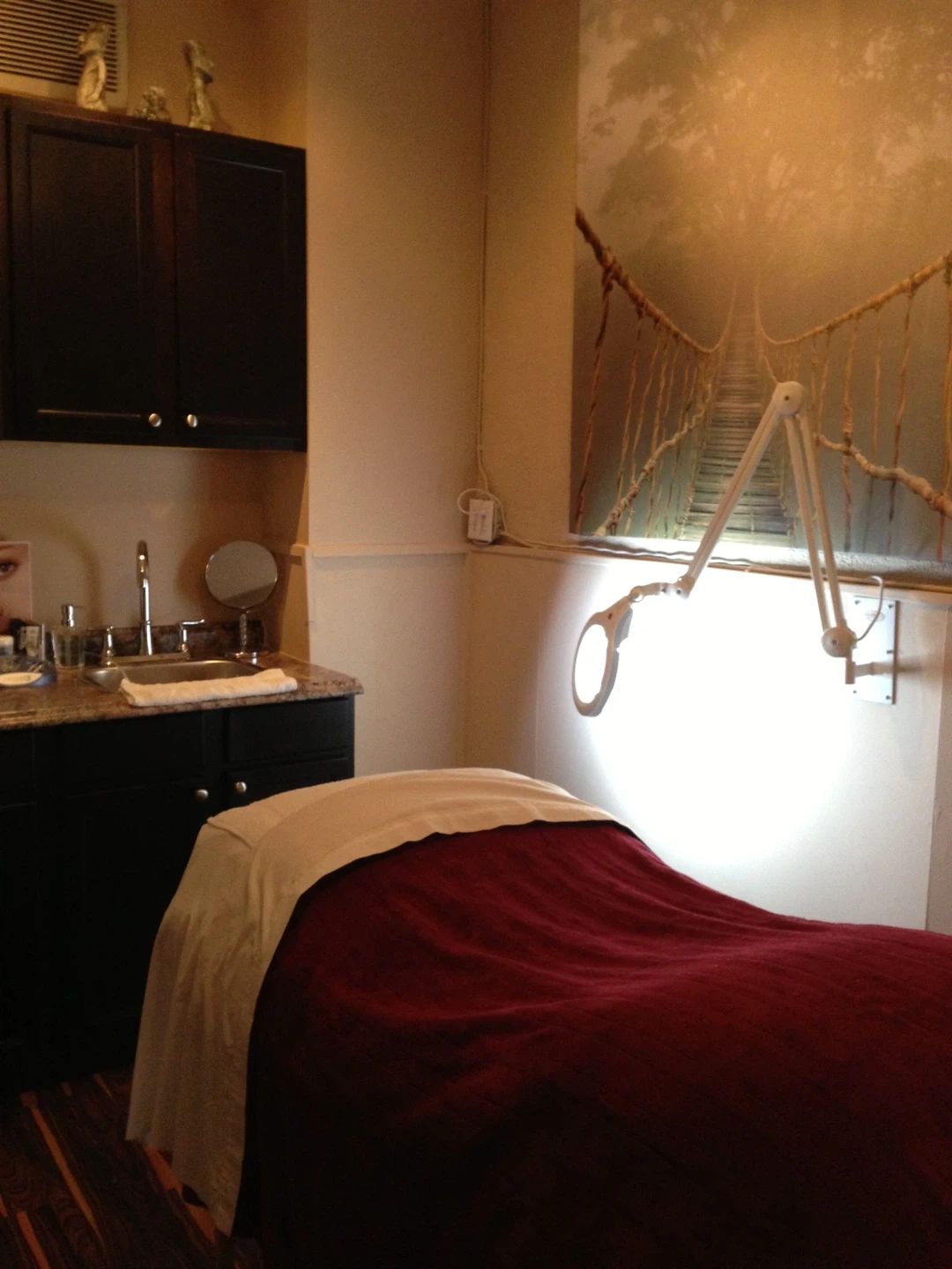 Wall-mounted with adjustable arm and bright light + magnification for facials, skincare, lash work, or detailed treatments.