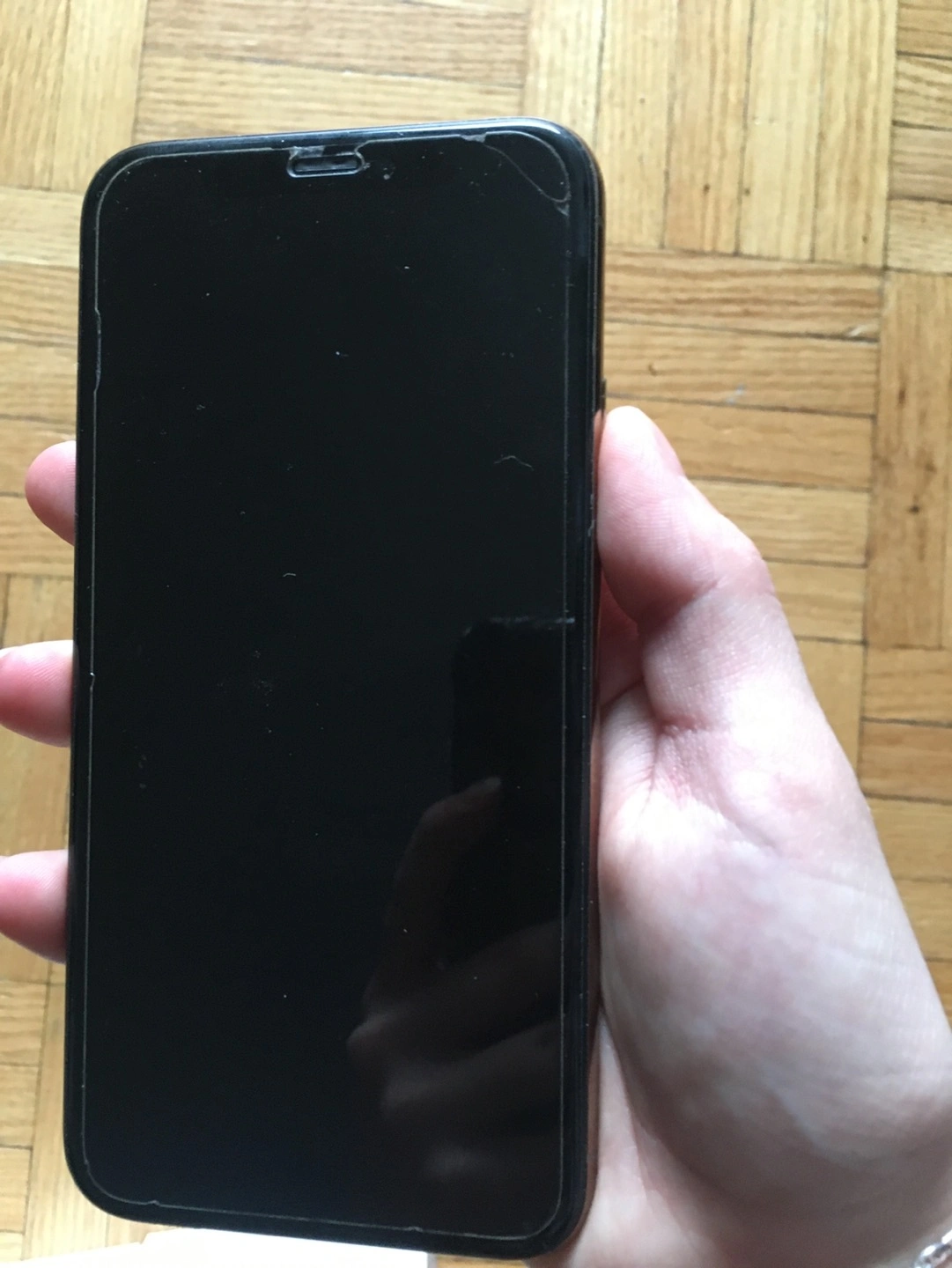 No scratches or dents. The tempered glass screen protector has some chips but the screen itself is in perfect condition. The phone is unlocked.