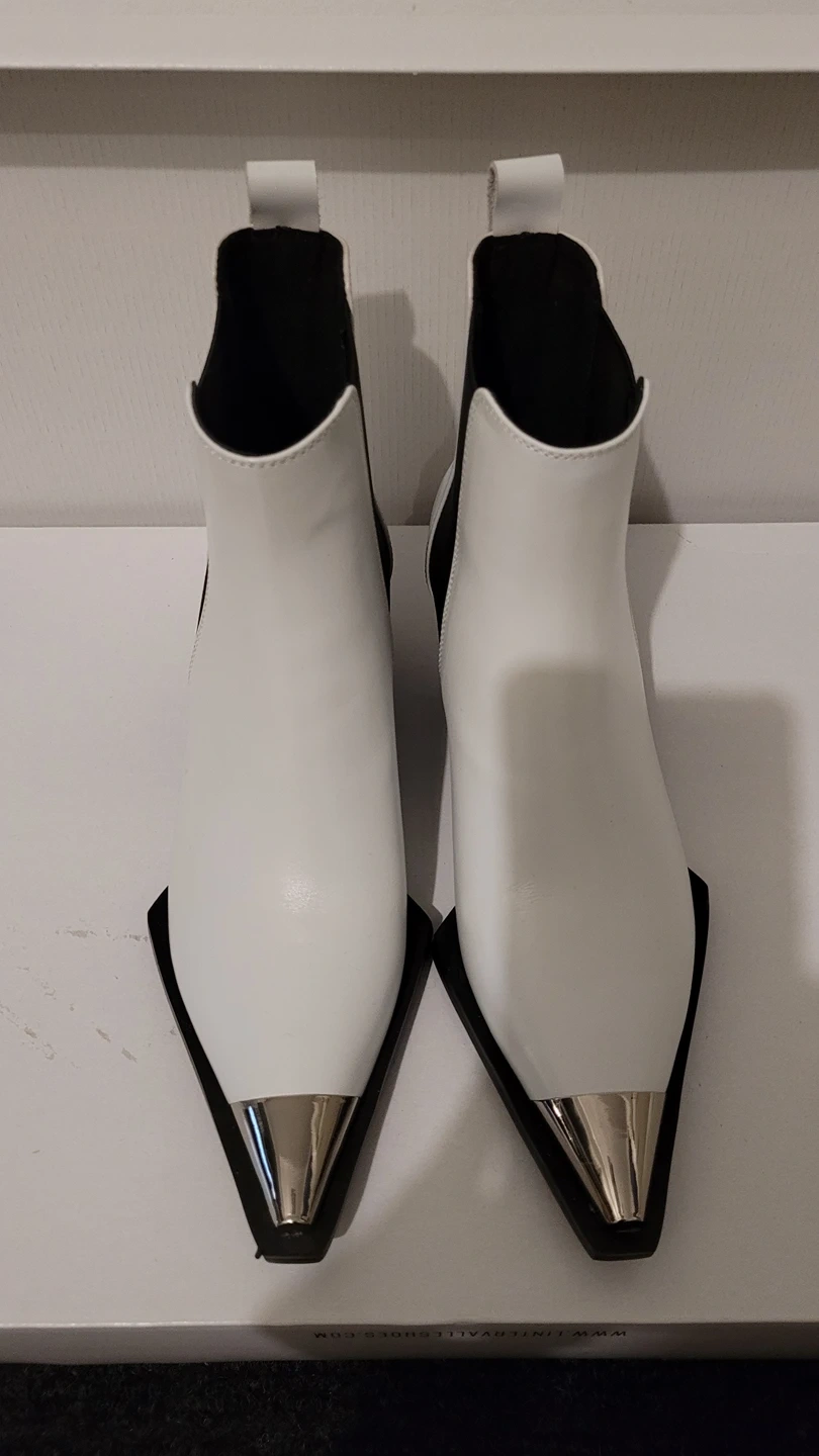 GRAB IT... CRAZY SALE...PURCHAED IN KOREA SEOUL LAST SUMMER.. BRAND NEW..BEAUTIFUL WHITE REAL LEATHER BOOTS. TENDY DANDY SASSY... WELL MADE VERY STRONG.