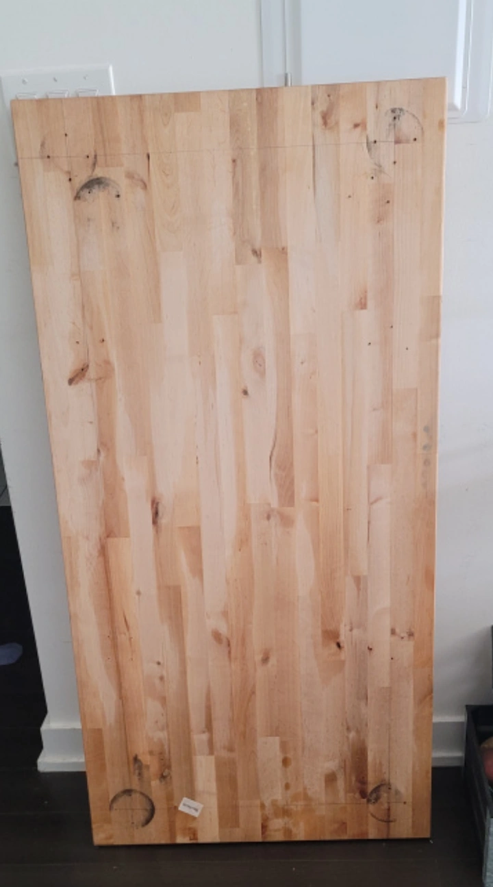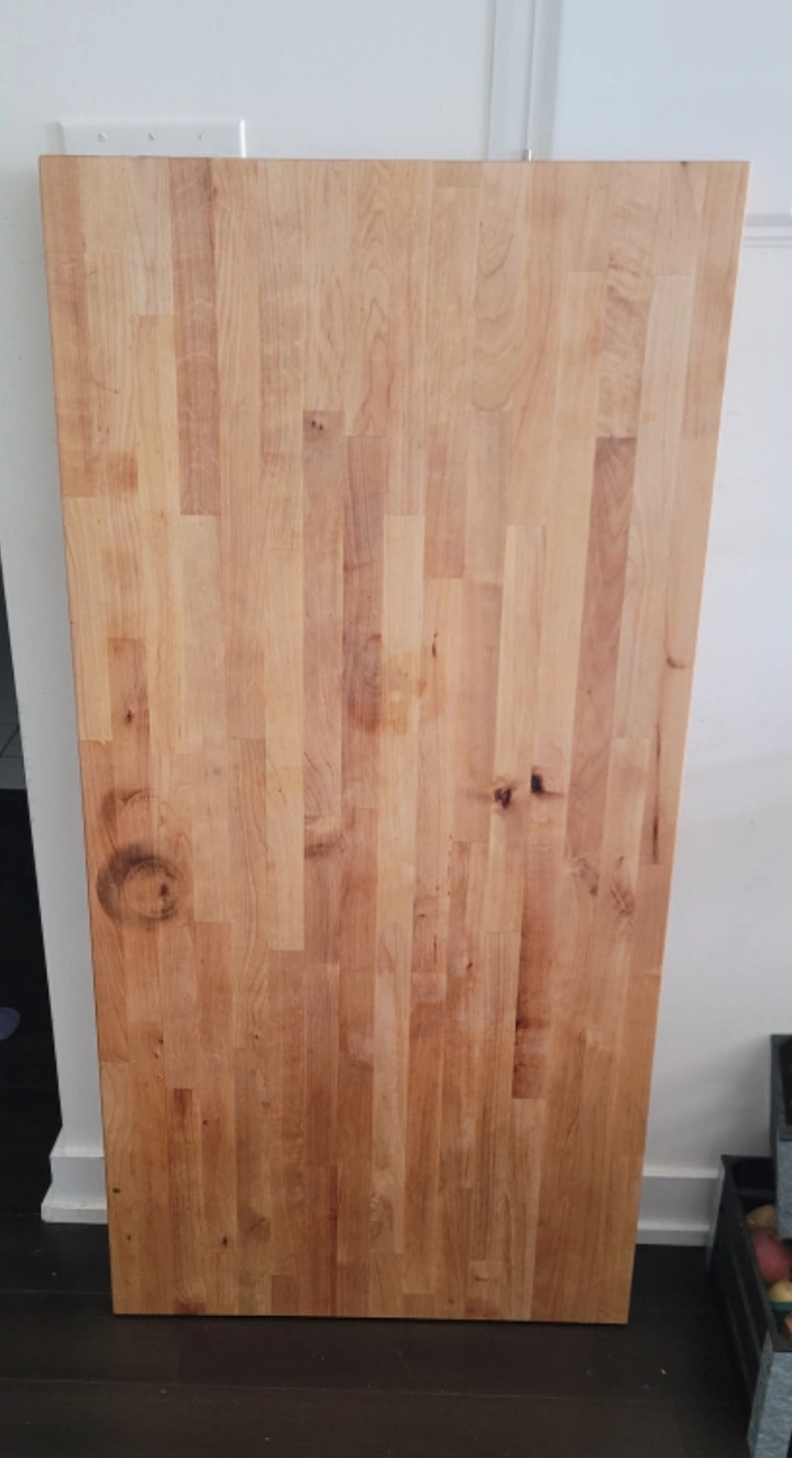 This countertop was originally part of an island I built for my apartment. The top has been regularly seasoned with butcher block oil a couple of times a month for about a year, ensuring it's well-maintained and ready for use.