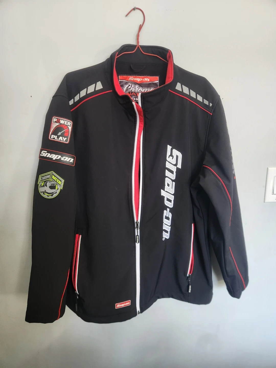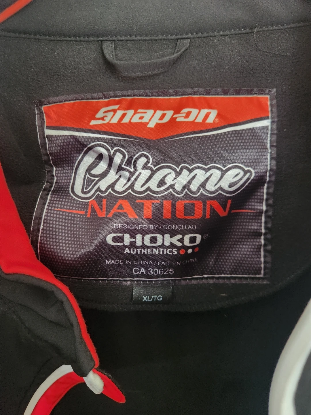Black Snap-on Chrome Nation jacket with graphics. Designed by Choko Authentics. Size XL/TG. Great for Snap-on enthusiasts!