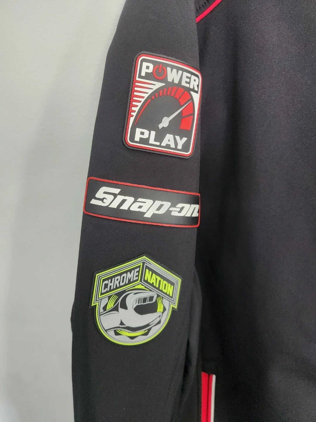 Black Snap-on Chrome Nation jacket with graphics. Designed by Choko Authentics. Size XL/TG. Great for Snap-on enthusiasts!