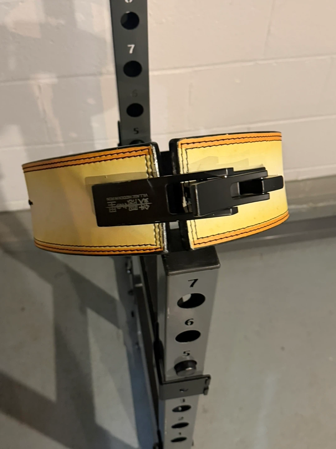 This is a weightlifting belt designed for support during heavy lifts. It features a quick-release buckle for easy adjustment and removal. The belt is constructed from durable leather for longevity. Perfect for powerlifting and Olympic weightlifting.