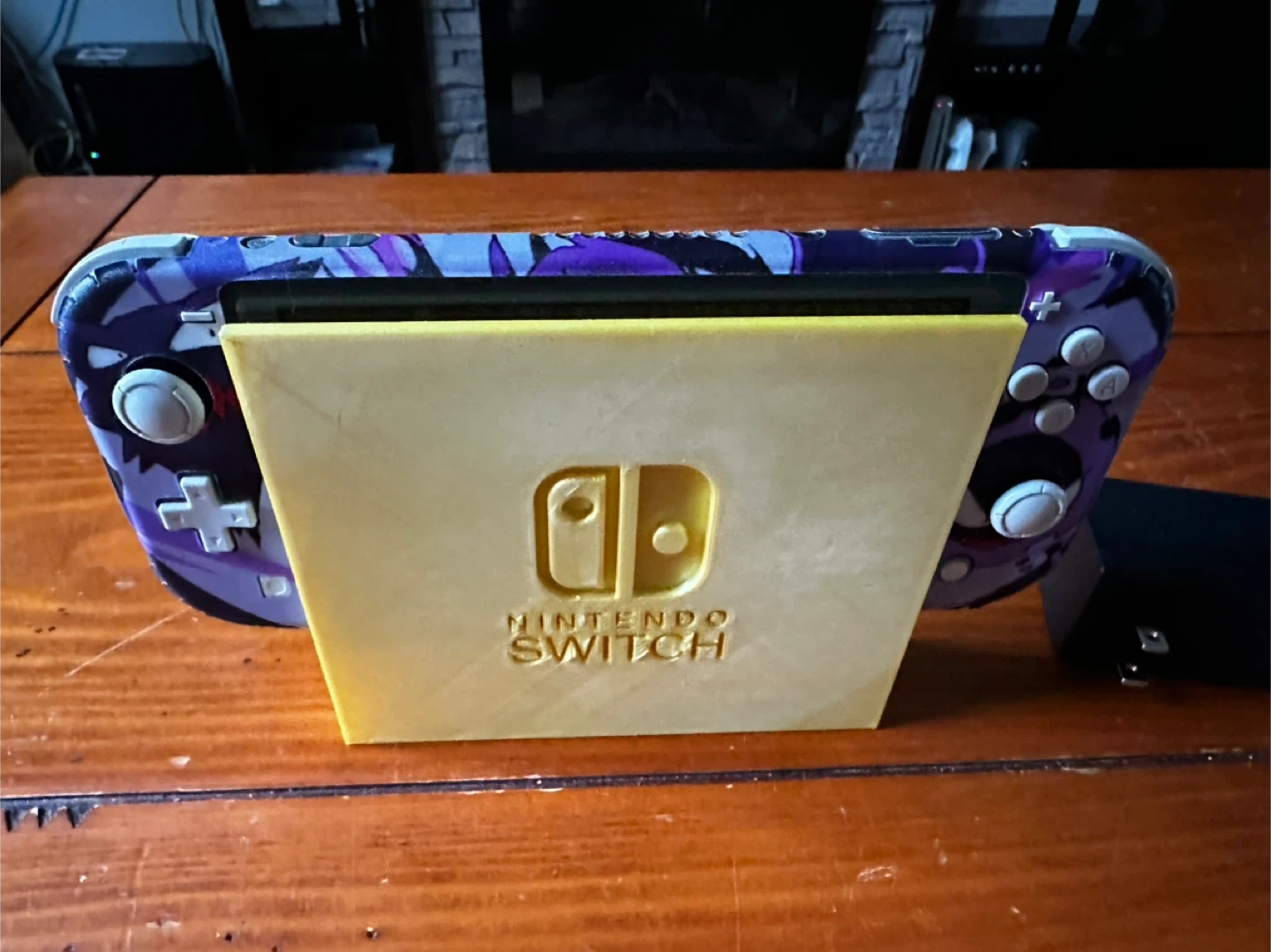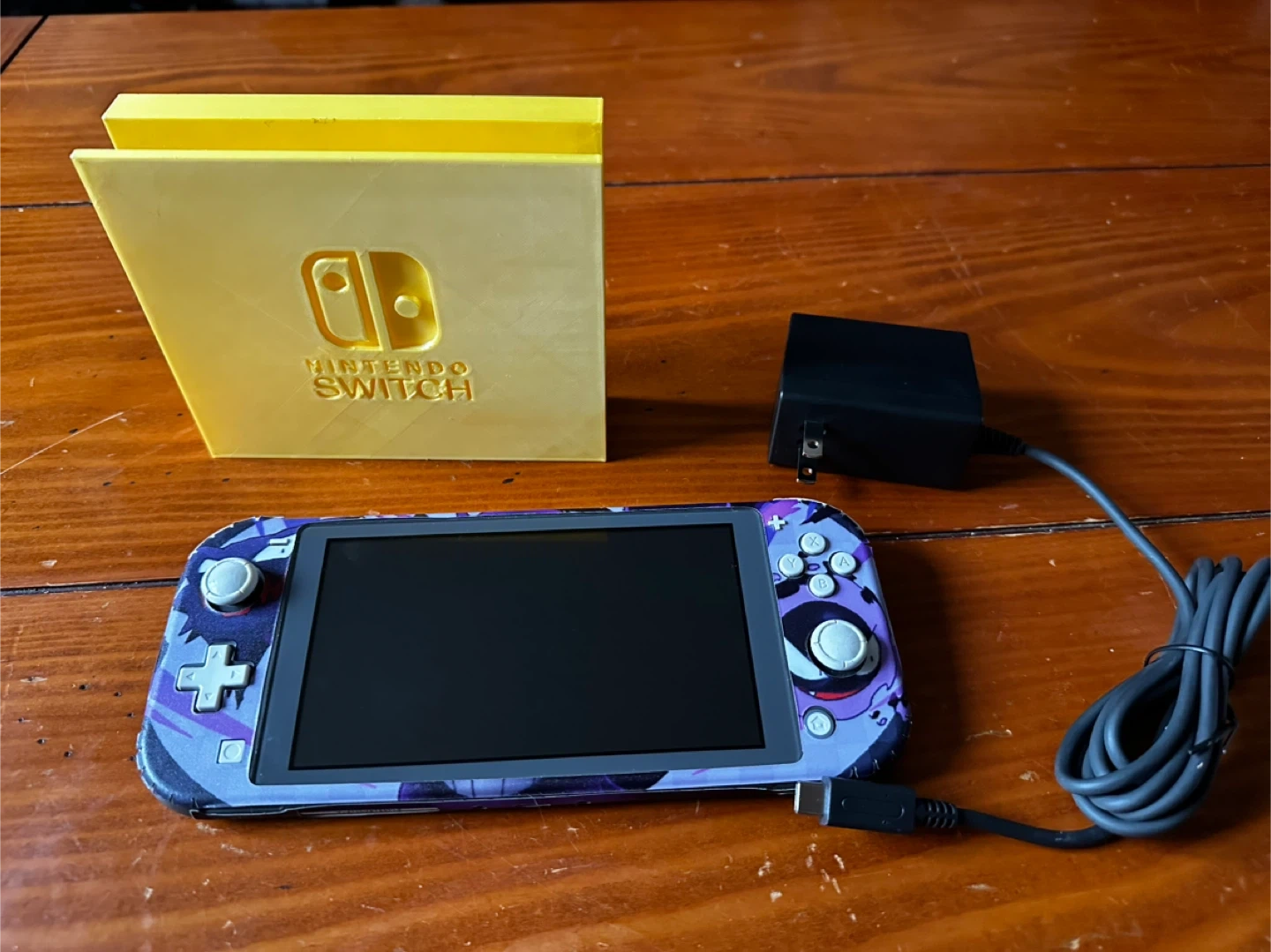 Selling a Nintendo Switch Lite with a custom Pokemon skin featuring Gengar and other Pokemon designs! It comes with a yellow stand and a charger. Perfect for any Pokemon fan looking for a unique Switch Lite!