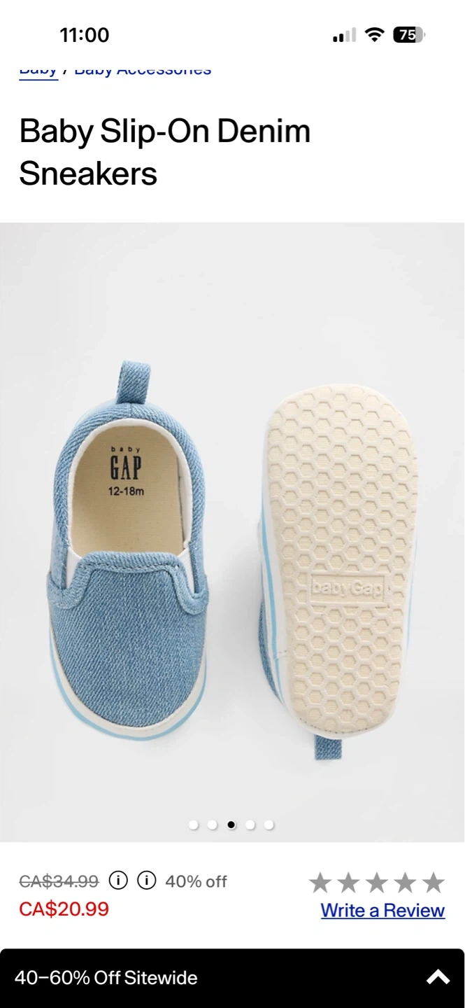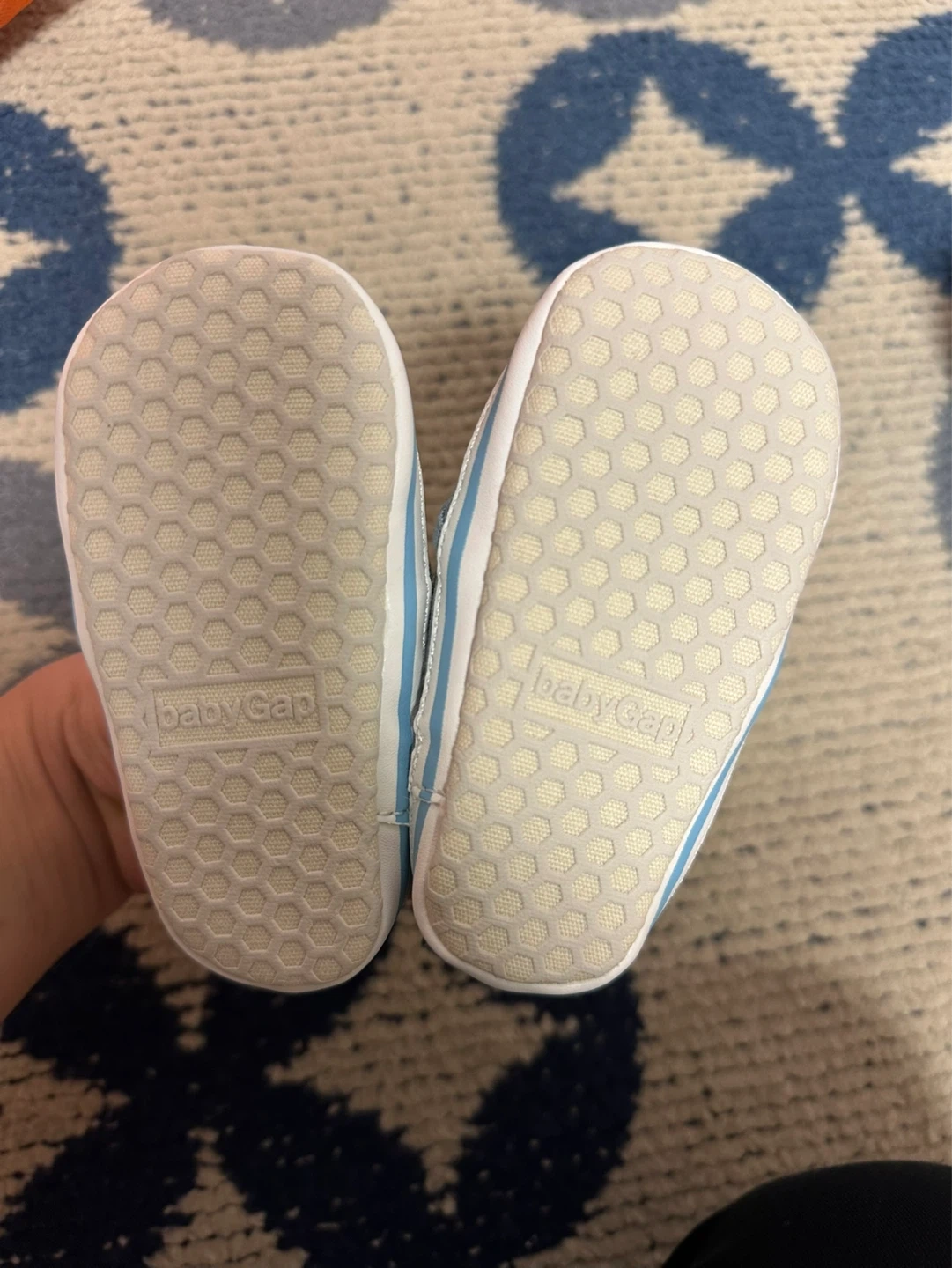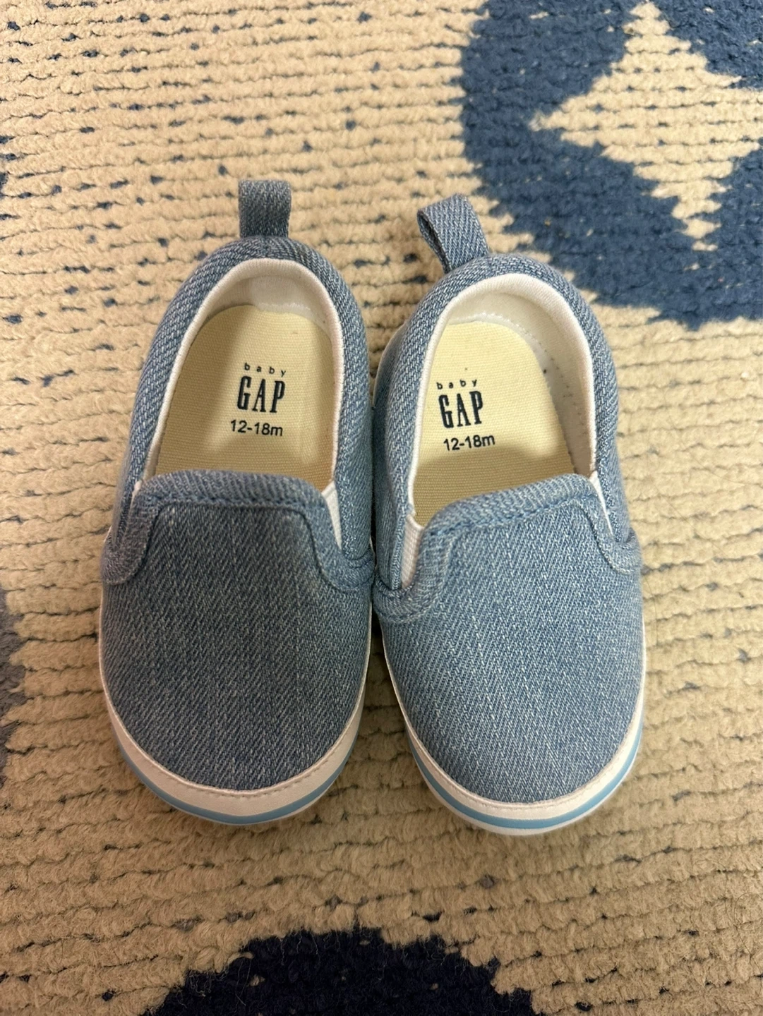 Cute baby blue denim slip-on sneakers from Baby Gap. Size is 12-18 months or size 5 in general for babies. These are perfect for little ones learni