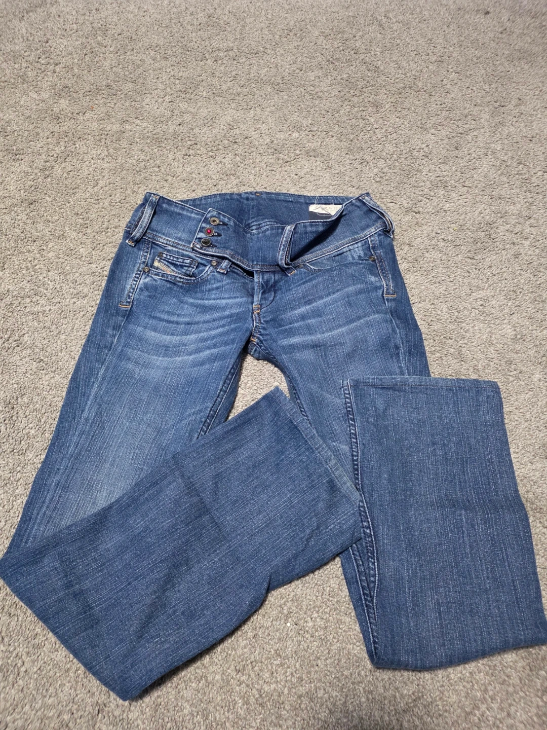 Diesel Cherock jeans in a size 27. These jeans are a stylish addition to any wardrobe! The denim is a classic blue wash, perfect for everyday wear. They are in great condition and ready for a new home