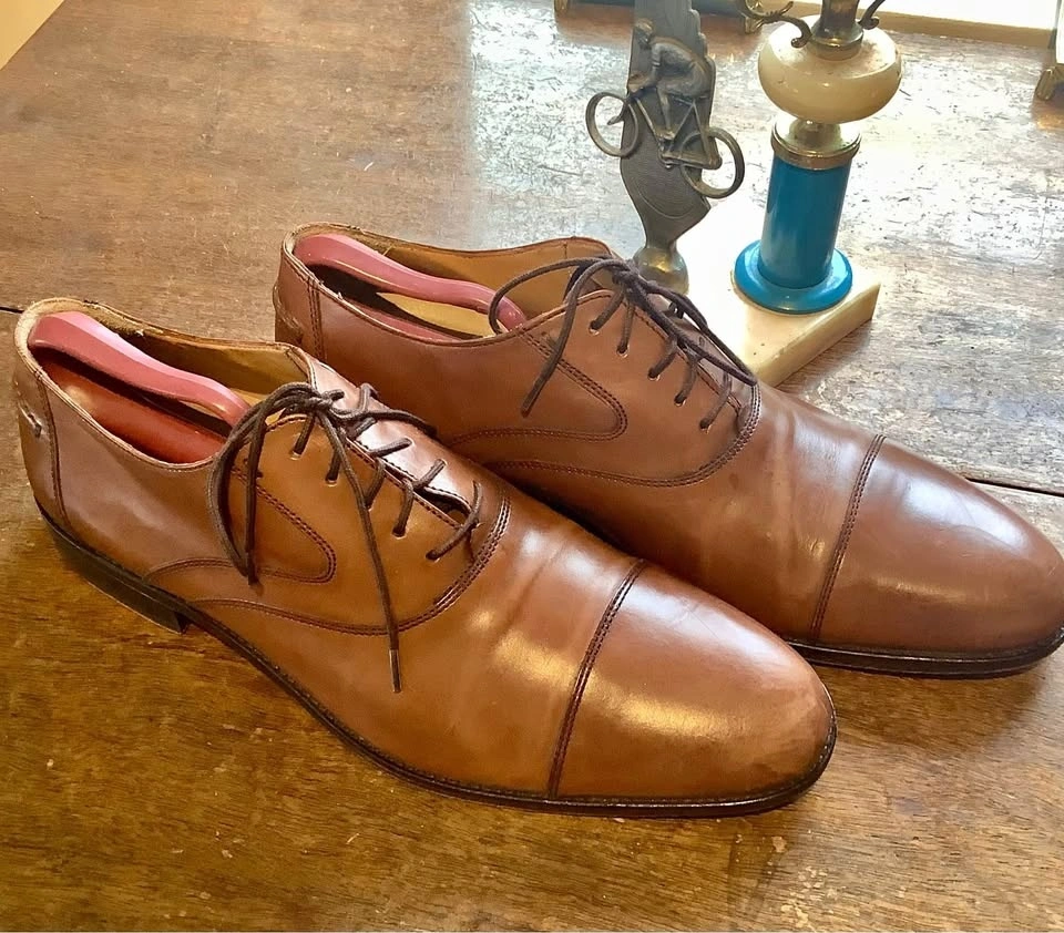 The Johnston Murphy Cap Toe Oxford Leather Dress Shoes in brown are a stylish and classic choice for men. Featuring an almond toe shape, lace-up closure, and leather lining, these shoes offer both comfort and sophistication. With the brand's reputation for quality and preppy style, these shoes are a versatile addition to any wardrobe. These shoes are a timeless and elegant option for formal occasions or smart-casual outfits. Men’s size 11.