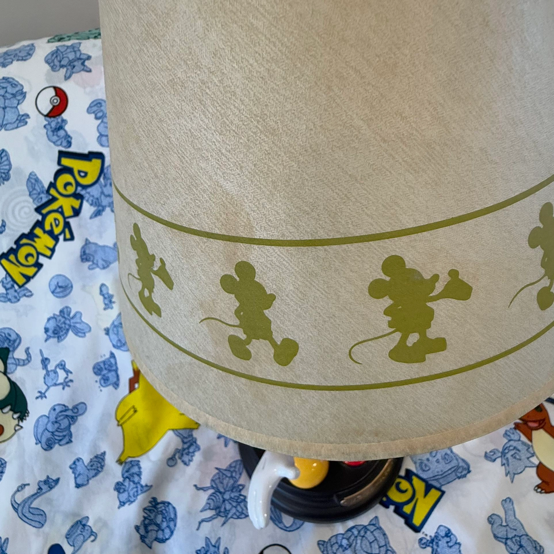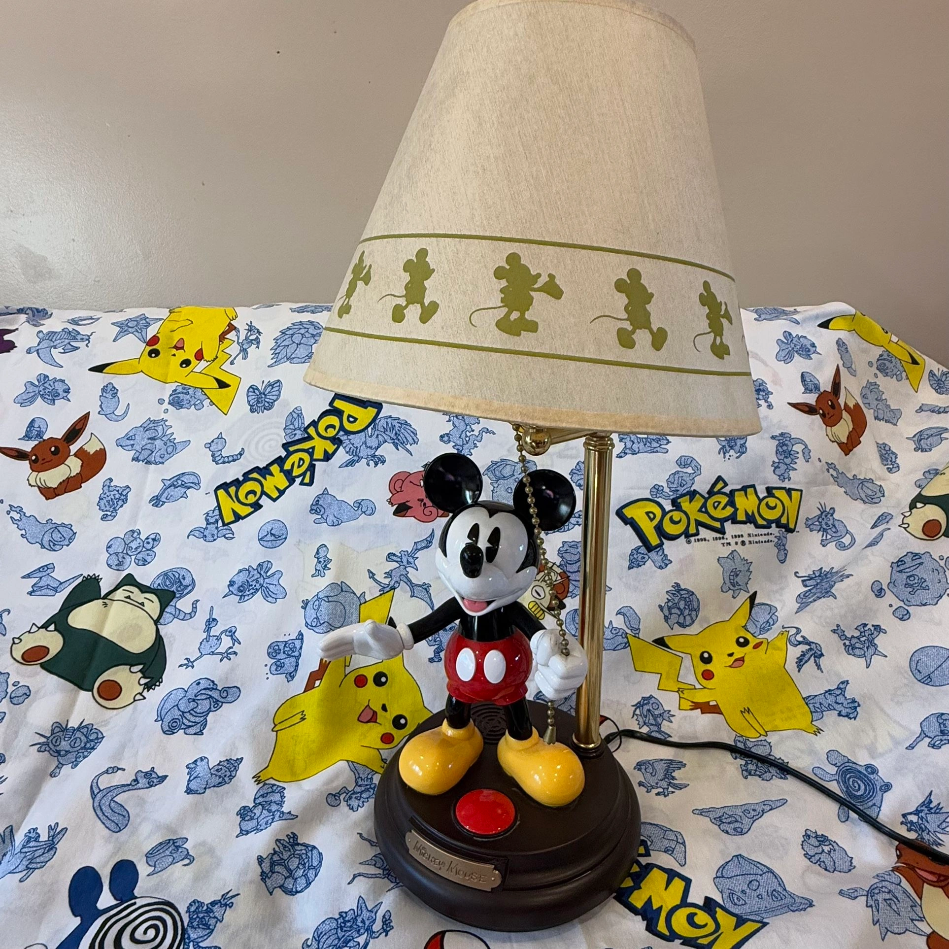 This is a vintage Disney Mickey Mouse talking table lamp from 2001. Made in China, this collectible lamp features the beloved character Mickey Mouse and is part of the Disney franchise. This lamp has been tested and is in working condition making it a unique and fun addition to any Disney fan's Collection. Lamp Shade has some wear and stain. (See pics).