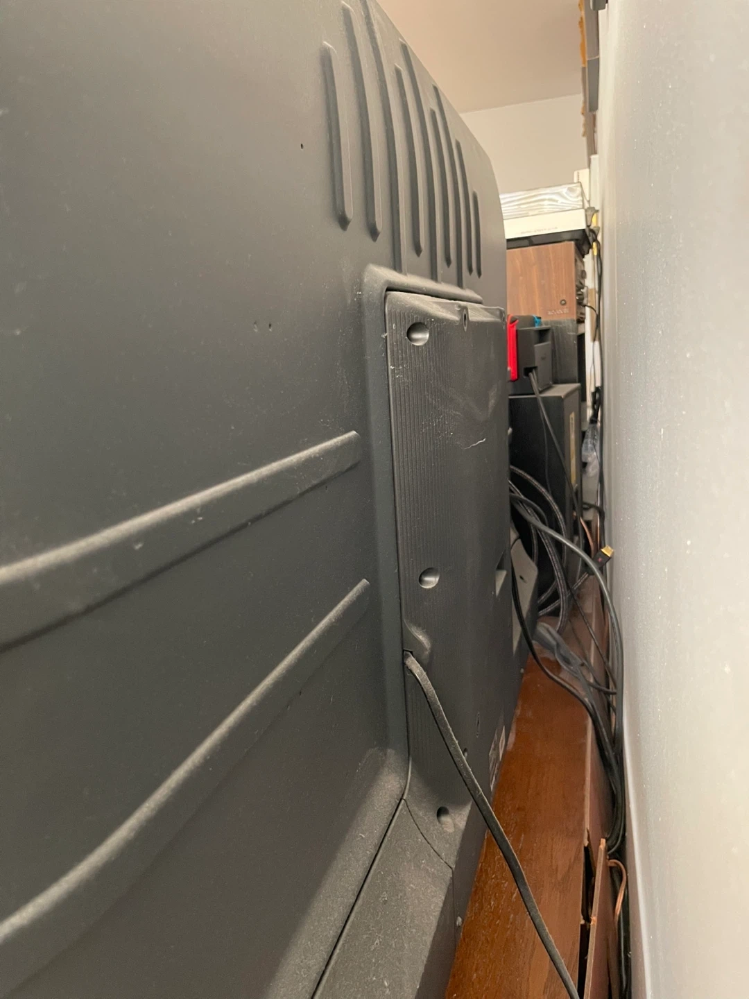 Has slots for hdmi cords etc at the back