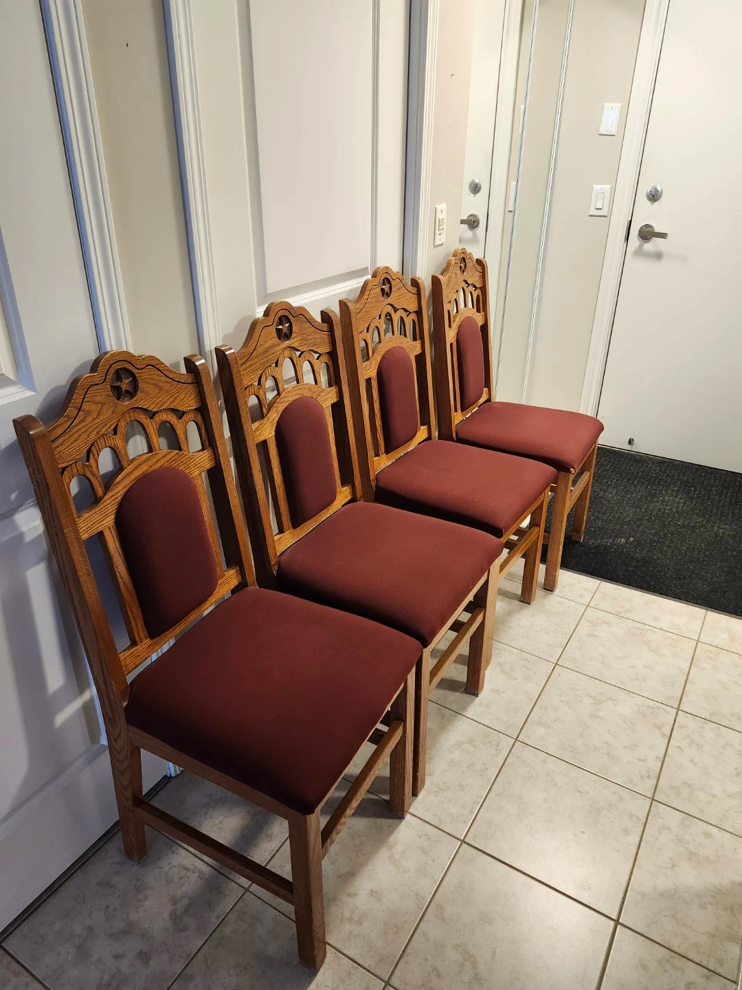 Buy & SellWooden Dining Chairs with Upholstered SeatWooden Dining Chairs with Upholstered Seat$2004 Wooden Dining Chairs with Upholstered Seat Will also take offers ConditionGoodWHERE TO MEETWoodbridge SWView MapSELLERNadWoodbridge SW19514 reviews0 chats·0 favorites·11 viewsSEND CHAT TO SELLERHi Nad! I’m interested in your listing.Hi Nad! I’m interested in your listing.Get the Karrot app to chatSign In to chat