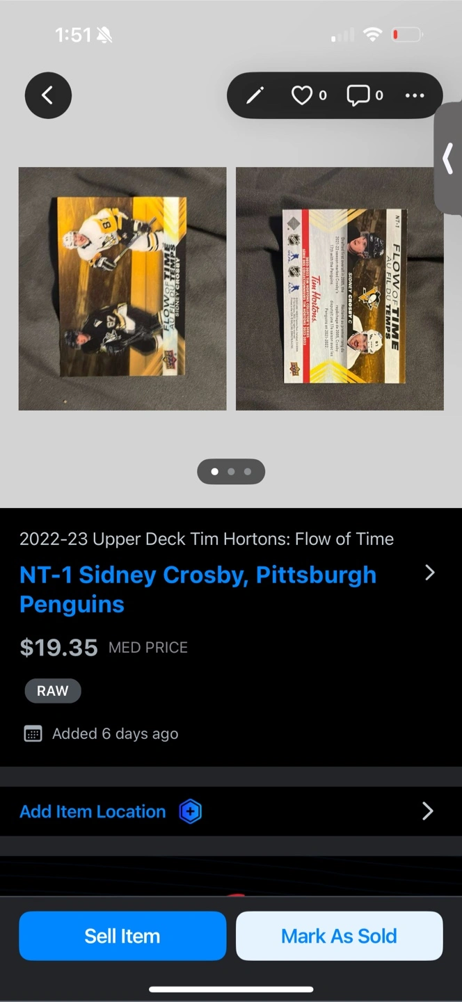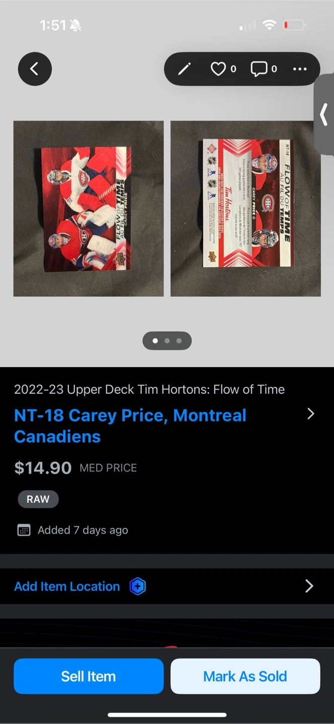 Buy & SellFlow of Time Tim’s hockey card Hockey CardFlow of Time Tim’s hockey card Hockey Card$6Sidney Crosby, and Carey price flow of time hockey cards. Both originally worth together: $34.25ConditionNewWHERE TO MEETCheck LocationView MapSELLERPreston HelmleOshawa Centre442 reviews1 chats·1 favorites·33 viewsSEND CHAT TO SELLERHi Preston Helmle! I’m interested in your listing.Hi Preston Helmle! I’m interested in your listing.Get the Karrot app to chatSign In to chat