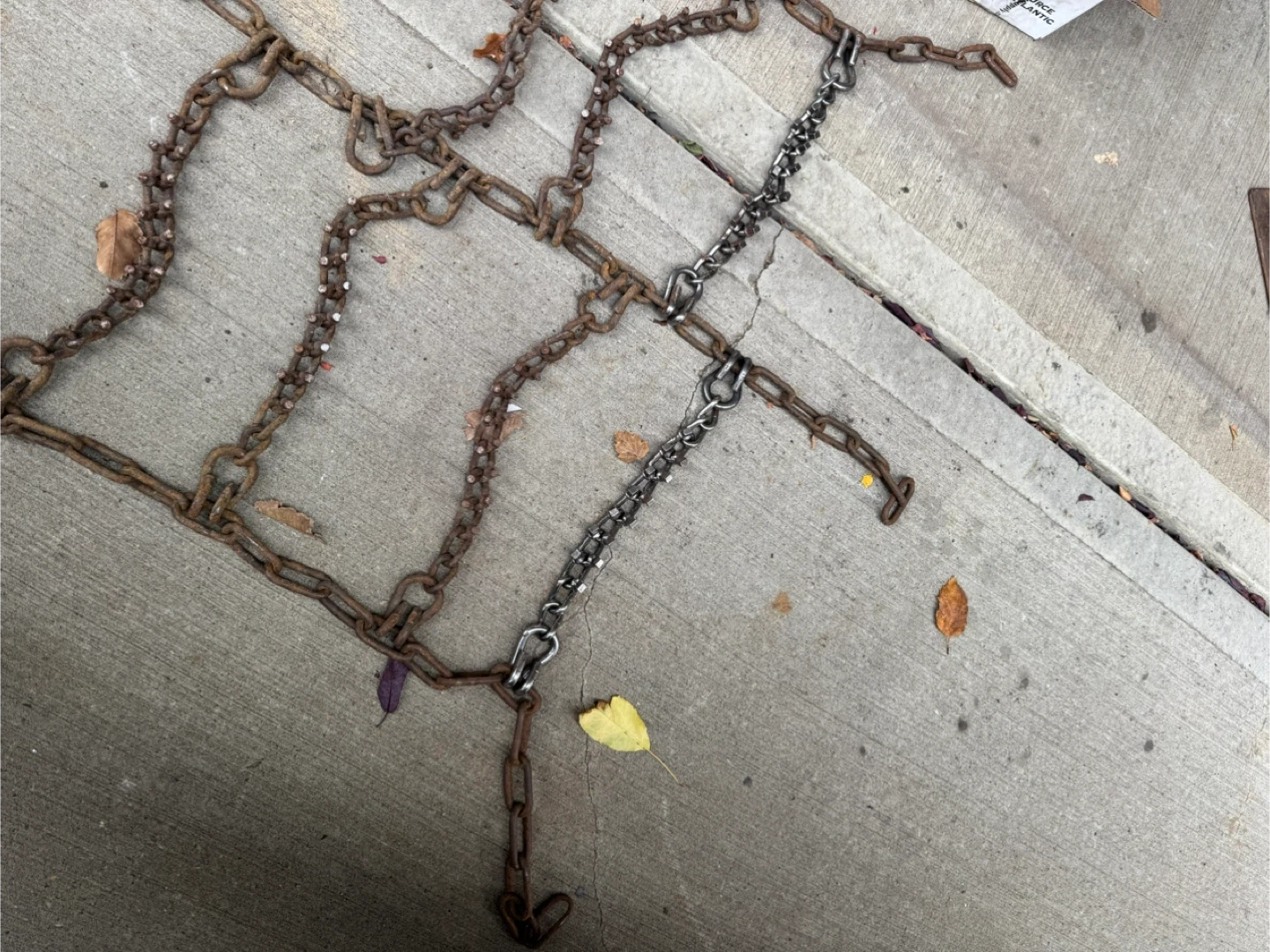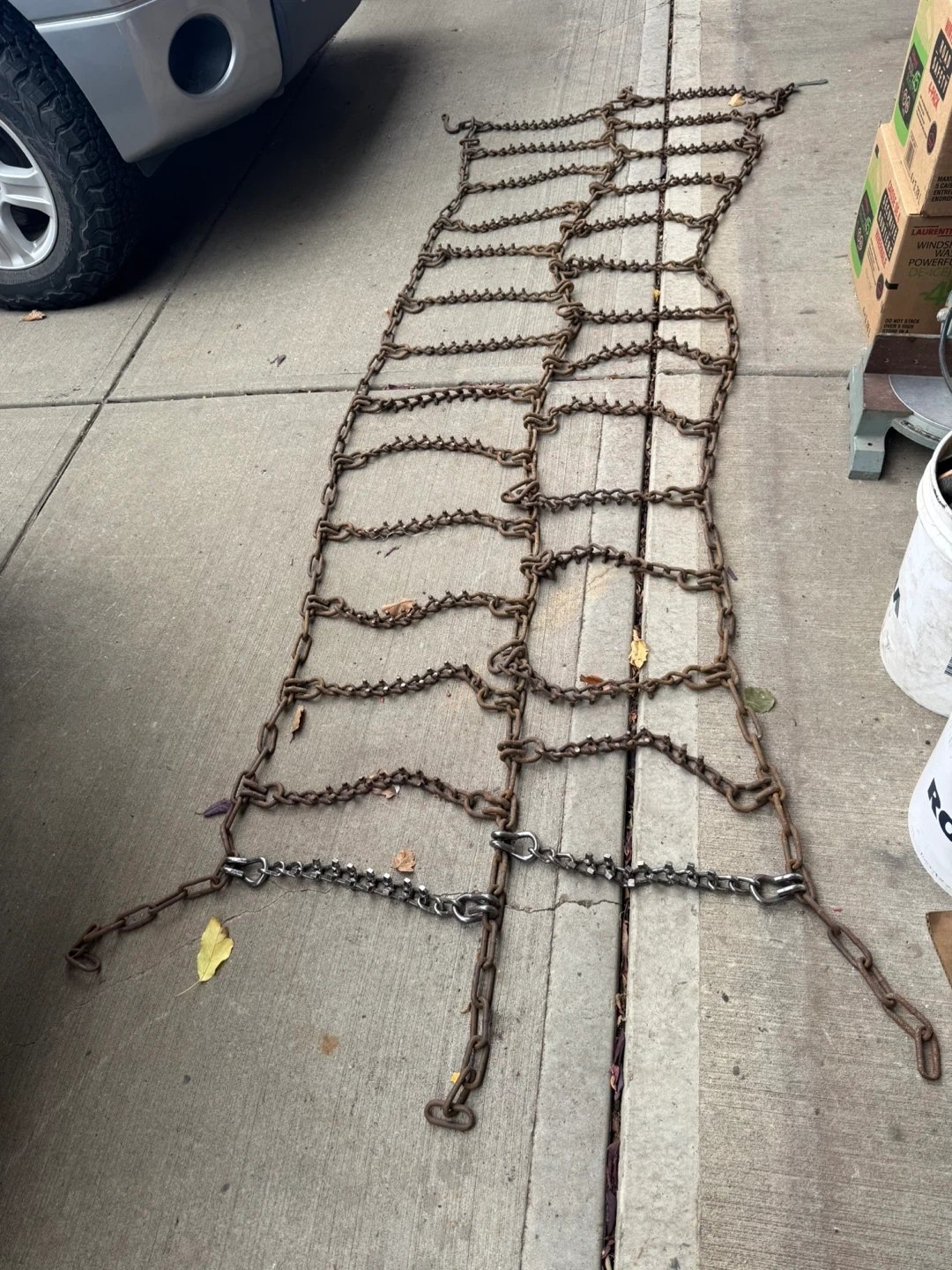 Selling a set of used tire chains 11-24.5 Triple Trigg button style semi truck winter tire chains. Lots of life left in them. Had to buy new set as per company road policy. Nothing wrong with them!!!