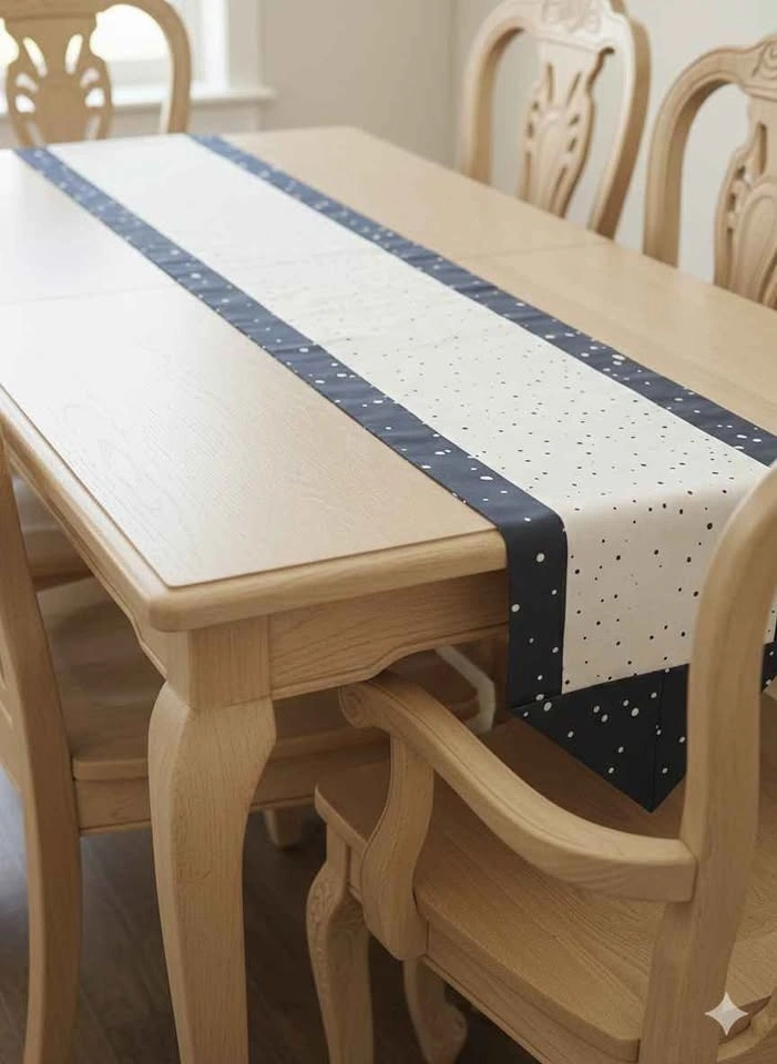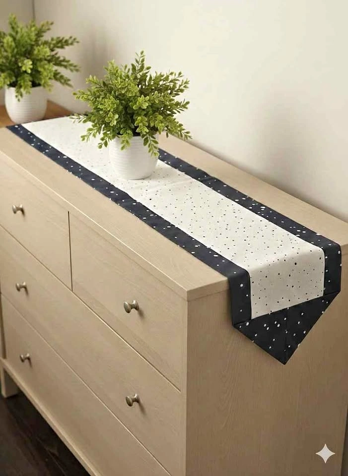 Pure cotton blue and white dotted table and dresser runner for sale. Length 65.5 inches, Width 12.5 inches. Brand new. Pick up in Brampton, Chinguacousy and Williams Parkway intersection.