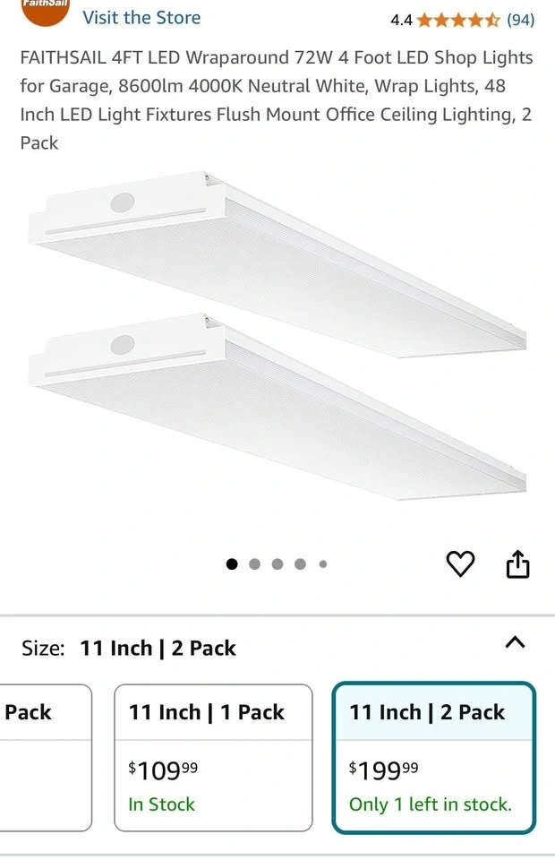 4 Foot LED Shop Lights for Garage, 8600lm 4000K Neutral White, Wrap Lights, 48 Inch LED Light Fixtures Flush Mount Office Ceiling Lighting, 2 Pack. $75. Buy now in Mississauga near Bloor and Dixie.