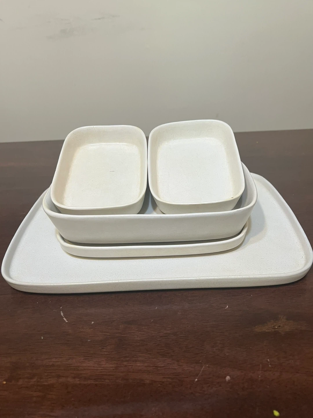 28Selling a lovely off-white ceramic serving dish set! Perfect for adding a touch of elegance to your table setting. The set includes various sizes, great for serving appetizers, snacks, or desserts. It's in great condition and ready for a new home!