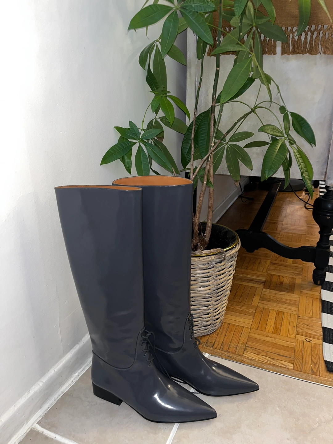 Beautiful Off-White c/o Virgil Abloh High Leather Boots - medium grey color - Never used - Comes with dust bag!
