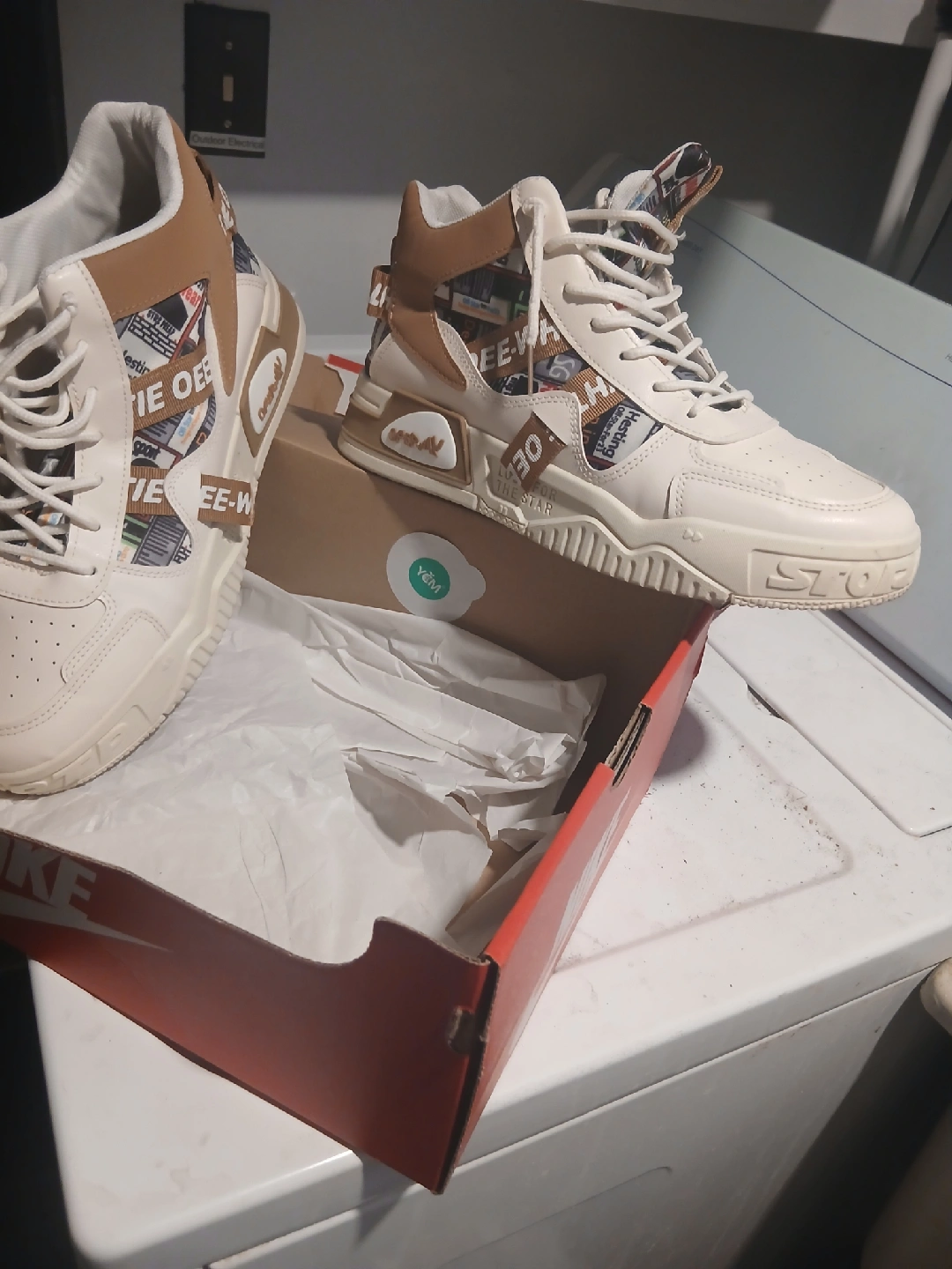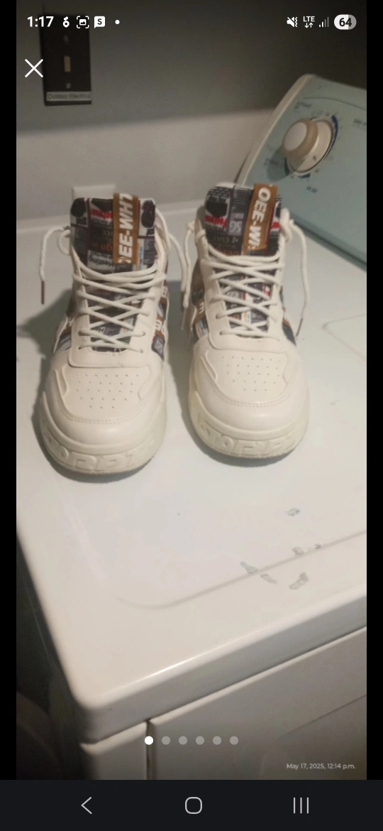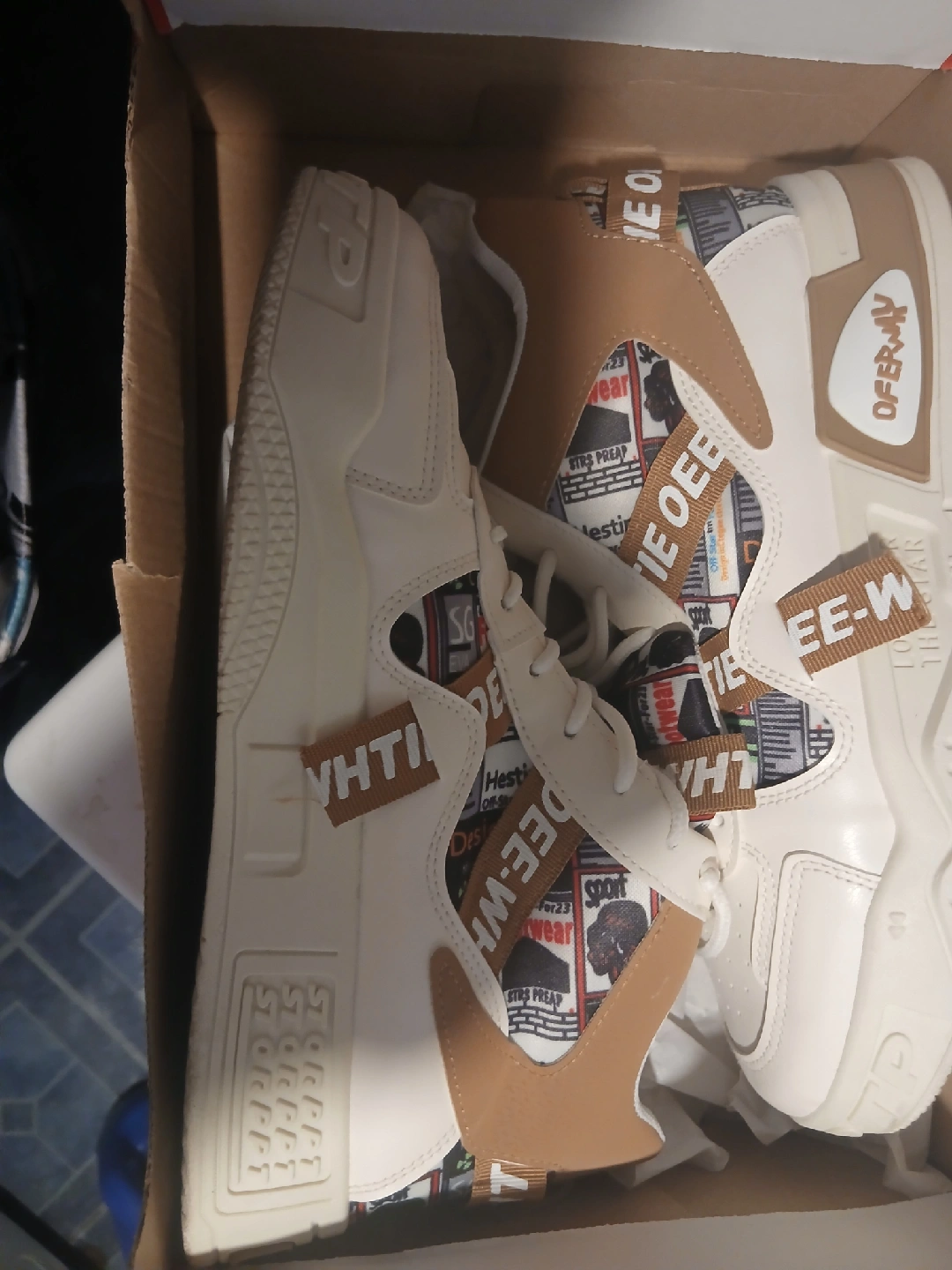 147Selling a pair of Off-White high-top sneakers! They have a unique design with text details on the sides. Please take a look at the pictures for more details!