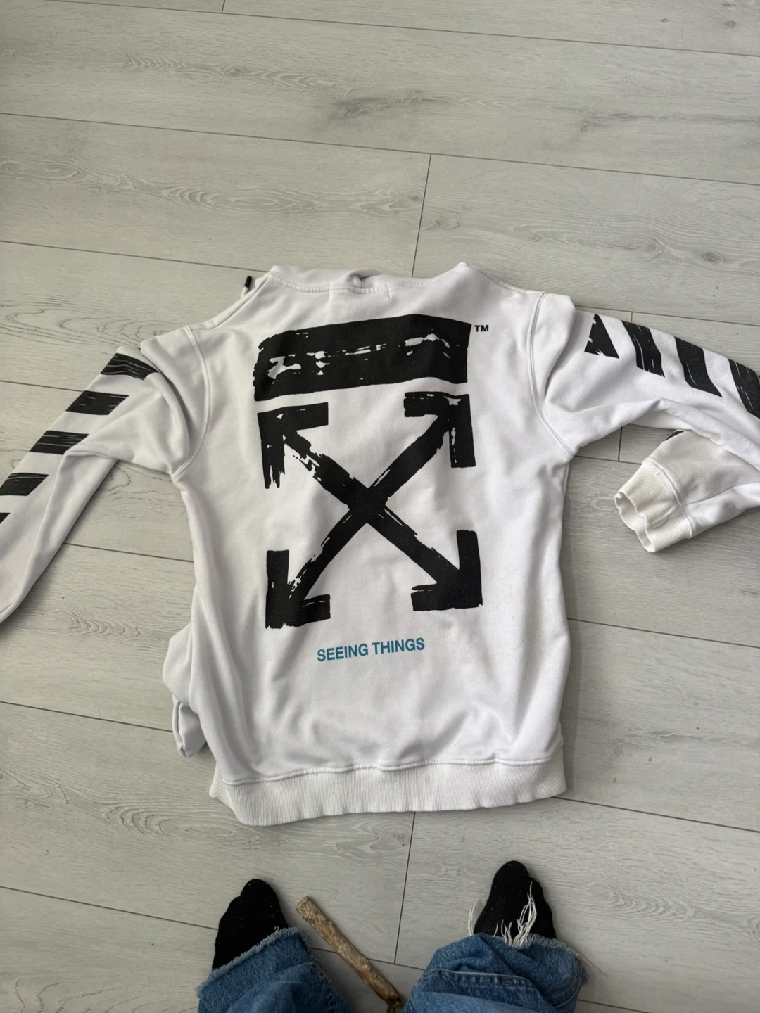 Selling a gently used Off-White hoodie. It's a size XXL and features the iconic Off-White design. Perfect for adding a stylish touch to your wardrobe!