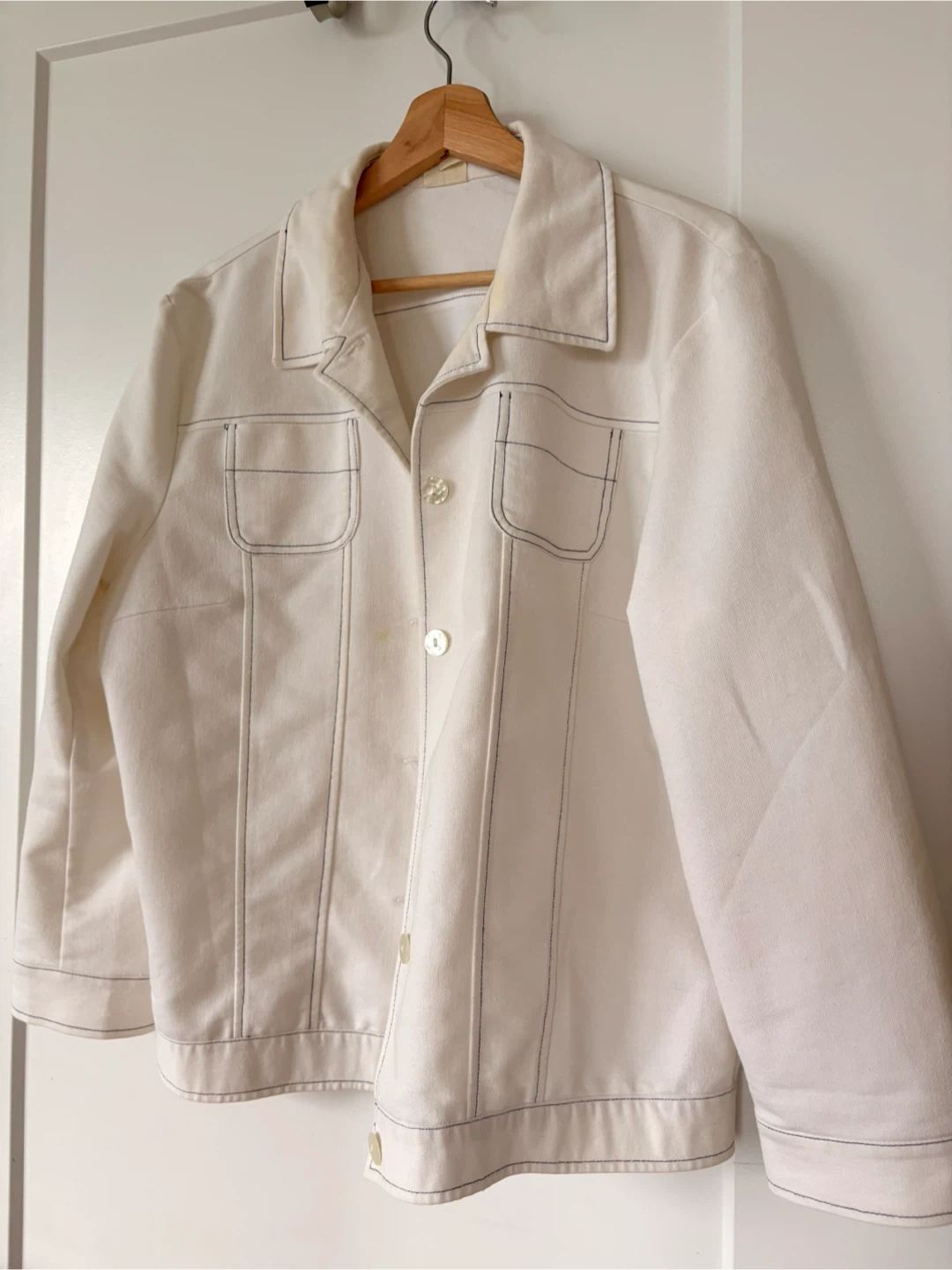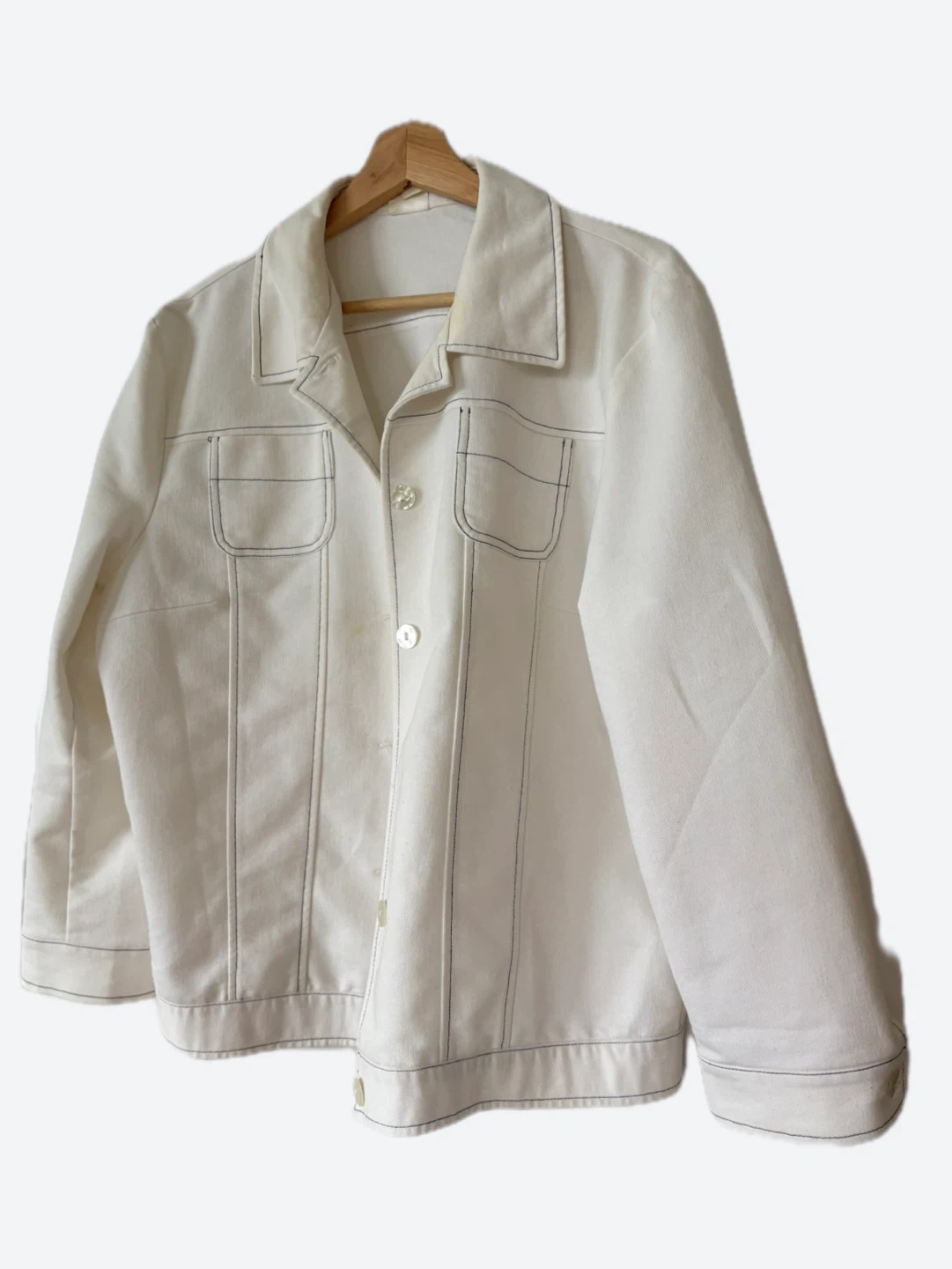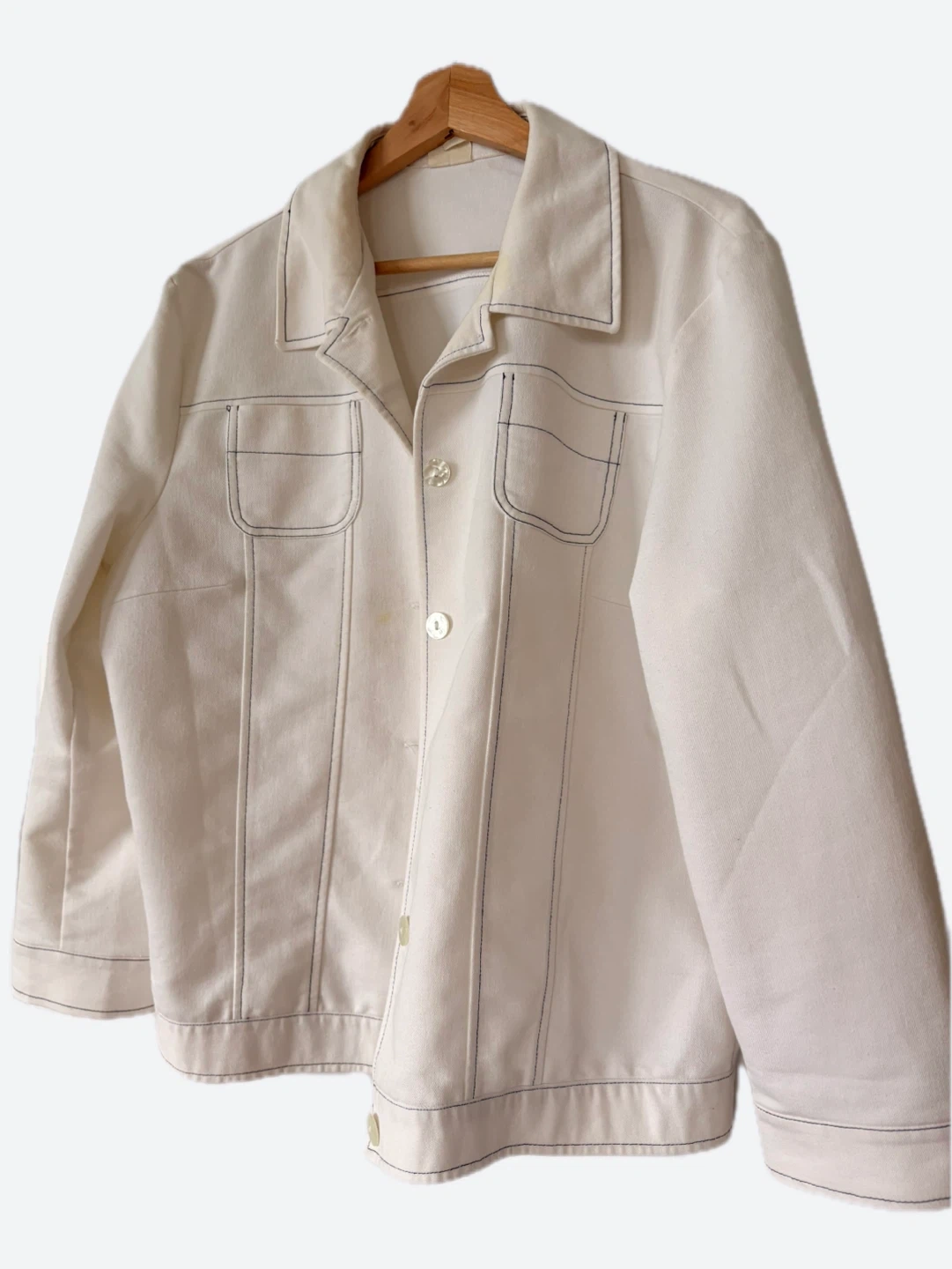 84Selling a stylish off-white jacket. It features a classic design with visible stitching and front pockets. A great addition to any wardrobe! Feel free to also check my other listings make a bundle with discount. #JacketSeason #WinterJacket #LeatherJacket #BomberJacket #DenimJacket #PufferJacket #CozyJackets #Outerwear #StayWarmInStyle