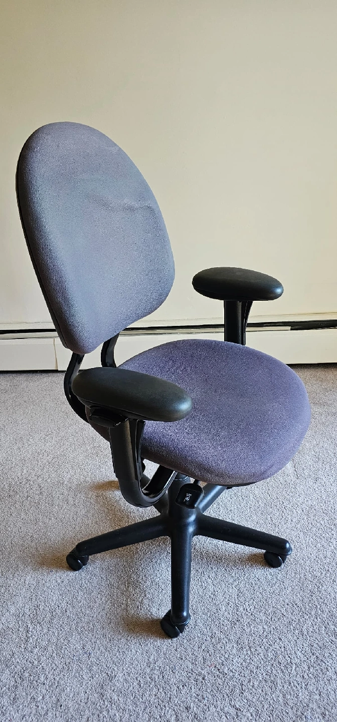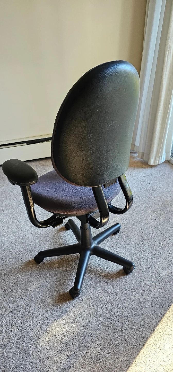 Office chair in good condition! It features adjustable seat height for customized comfort. Perfect for your home office or study space. Maximum height (from the seat of the chair to the ground) is 50cm and the minimum is 38 cm. It is for pick up only.