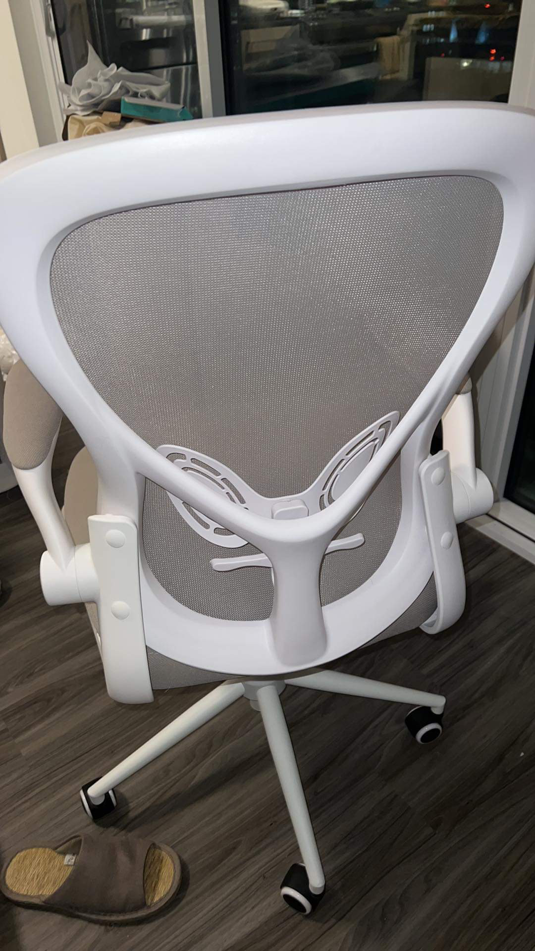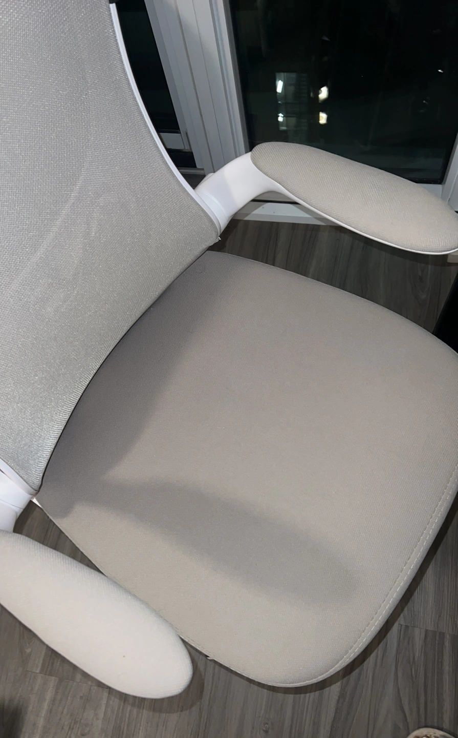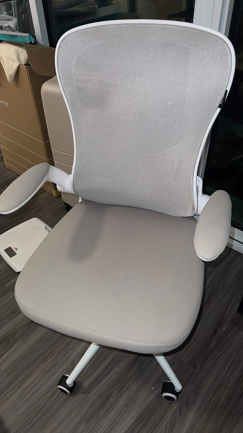 46Work chair, ergonomic with lumbar support and arm rest, height adjustable. I suffer from herniated disc and had no issues with this chair for working from home. Move out sale. No stains, no damage. Used for 10 months.