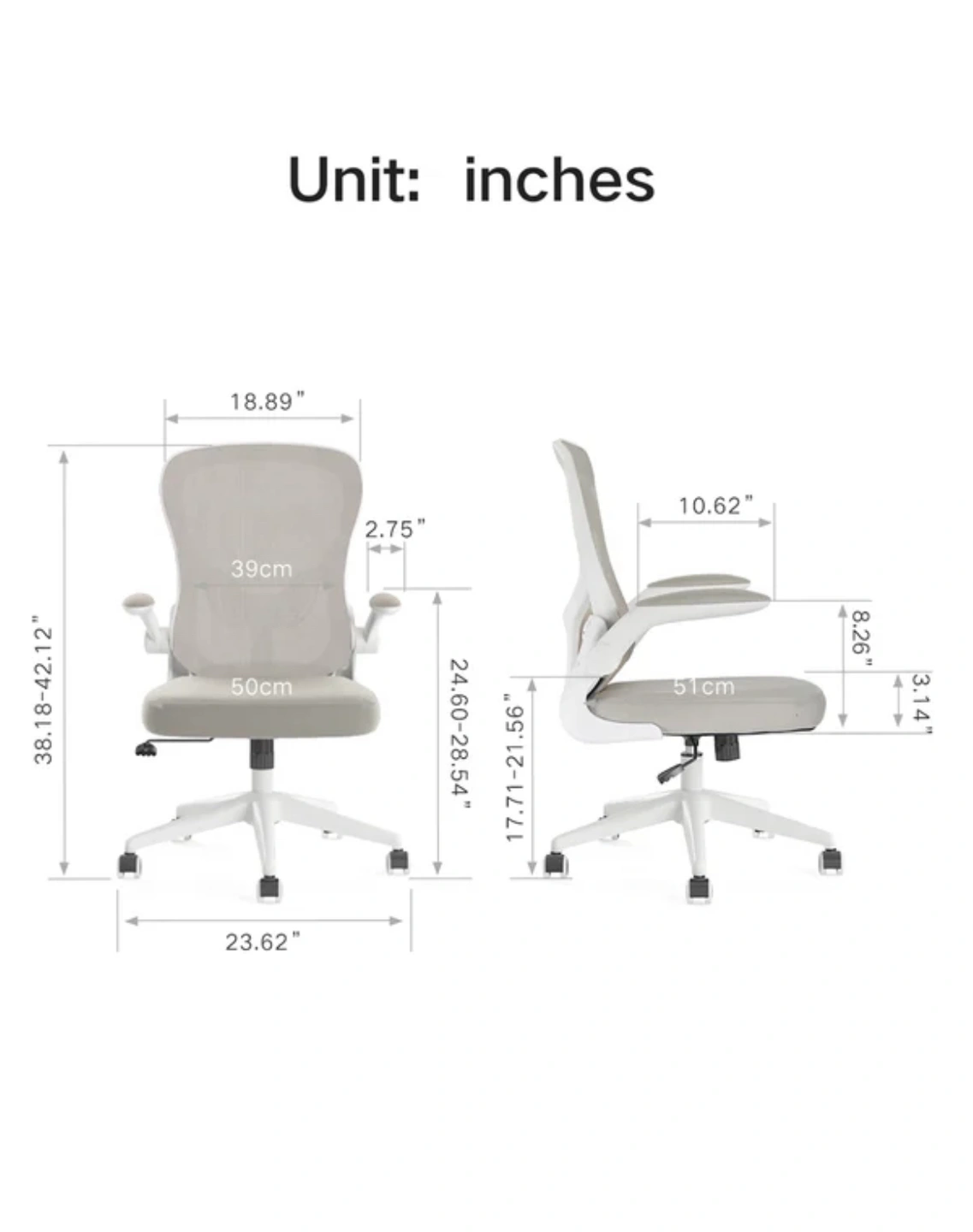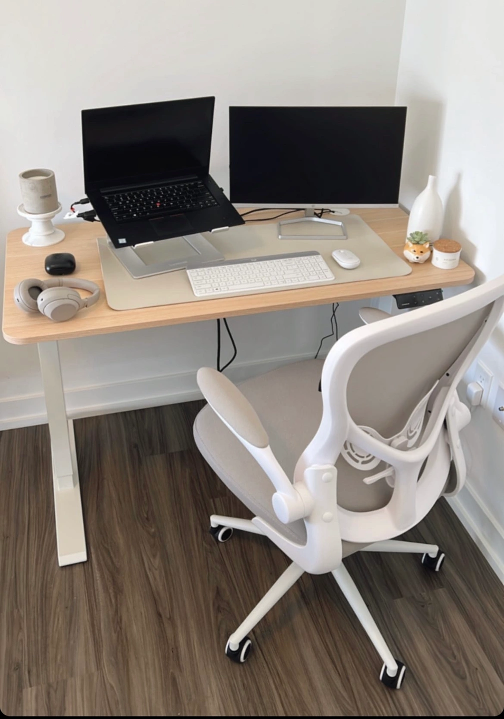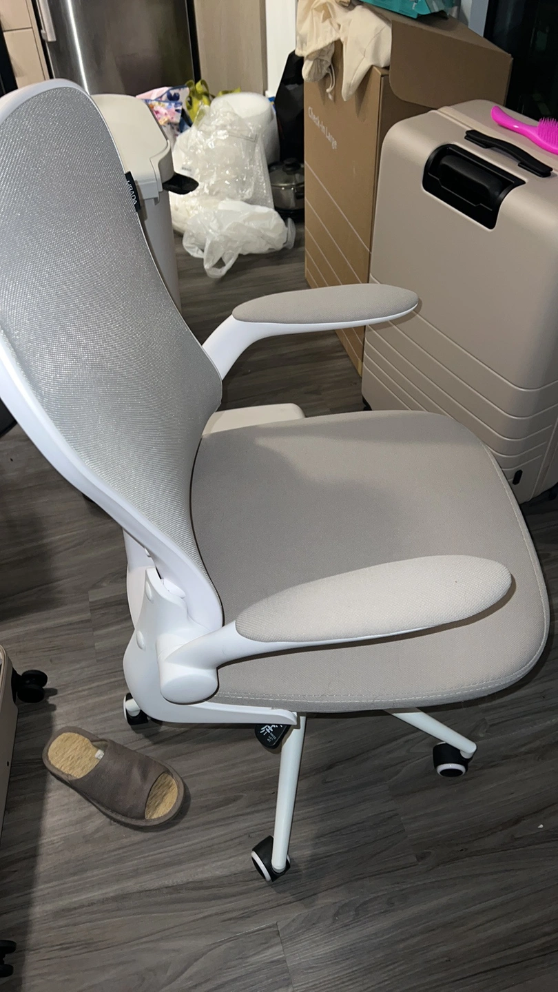 46Work chair, ergonomic with lumbar support and arm rest, height adjustable. I suffer from herniated disc and had no issues with this chair for working from home. Move out sale. No stains, no damage. Used for 10 months.