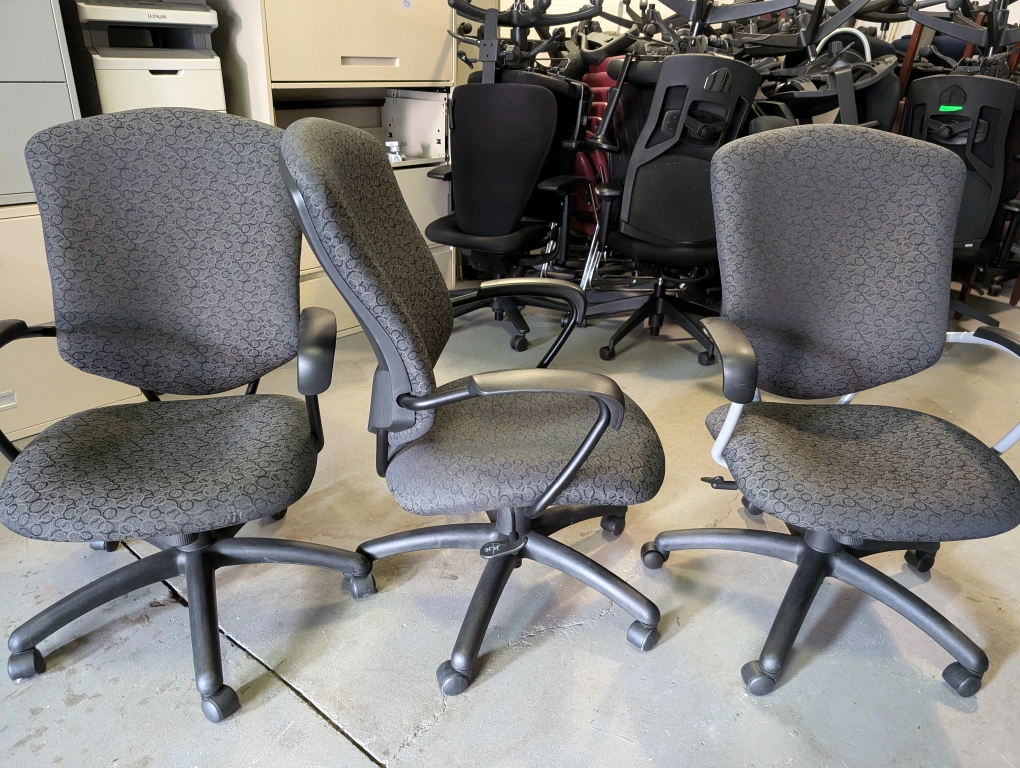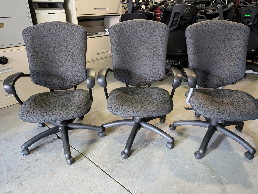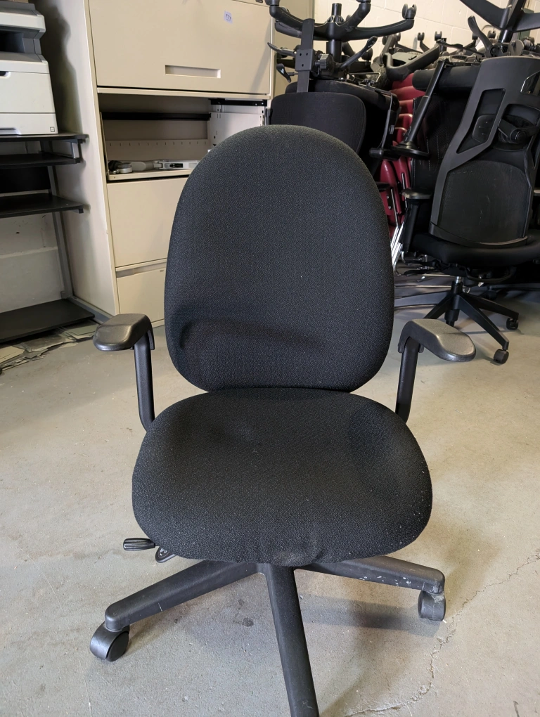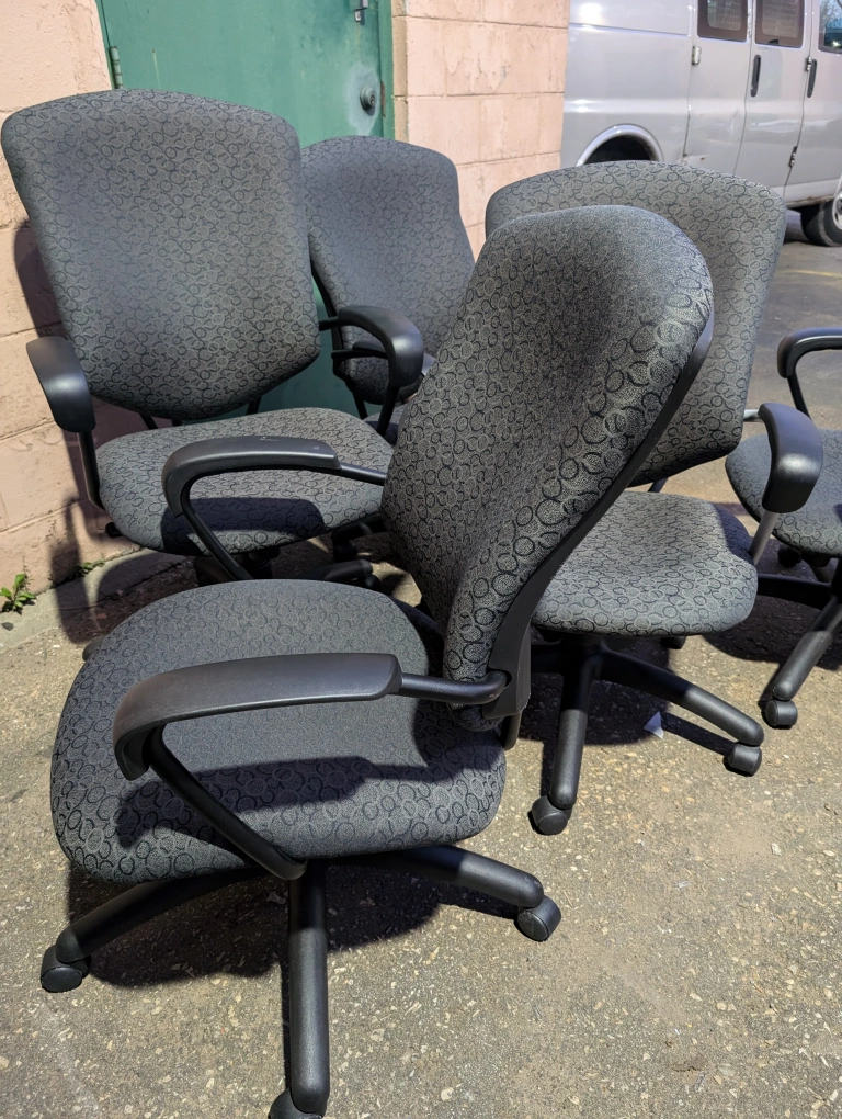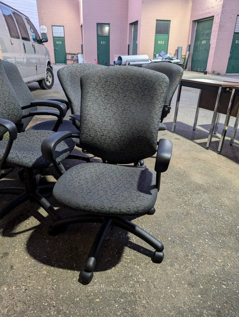 177The black office chairs with arms and wheels. They are all in the same style and have the same fabric. They swivel and have height adjustment. they are in excellent condition, barely used. the price is $25 each. I offer free delivery.