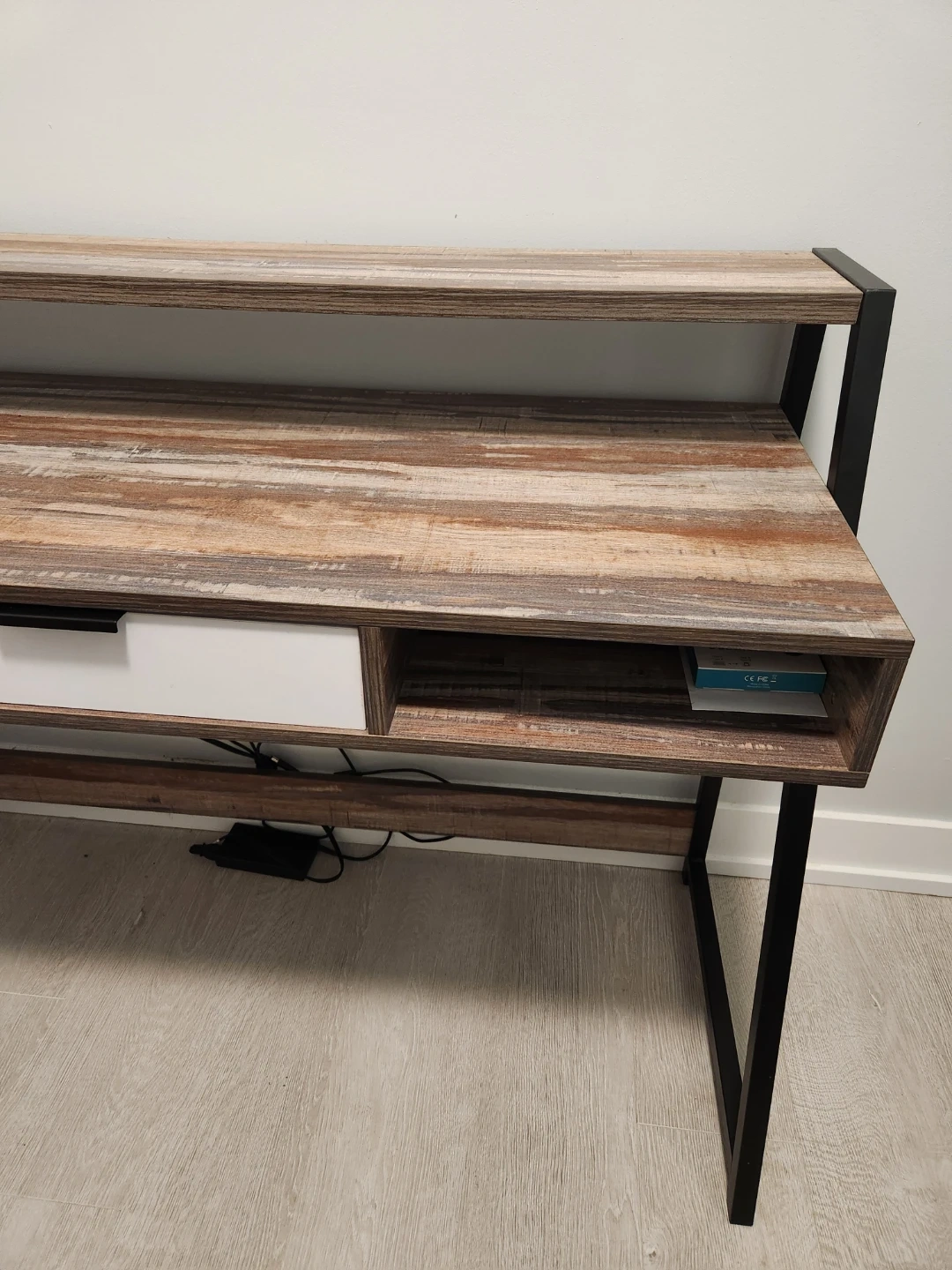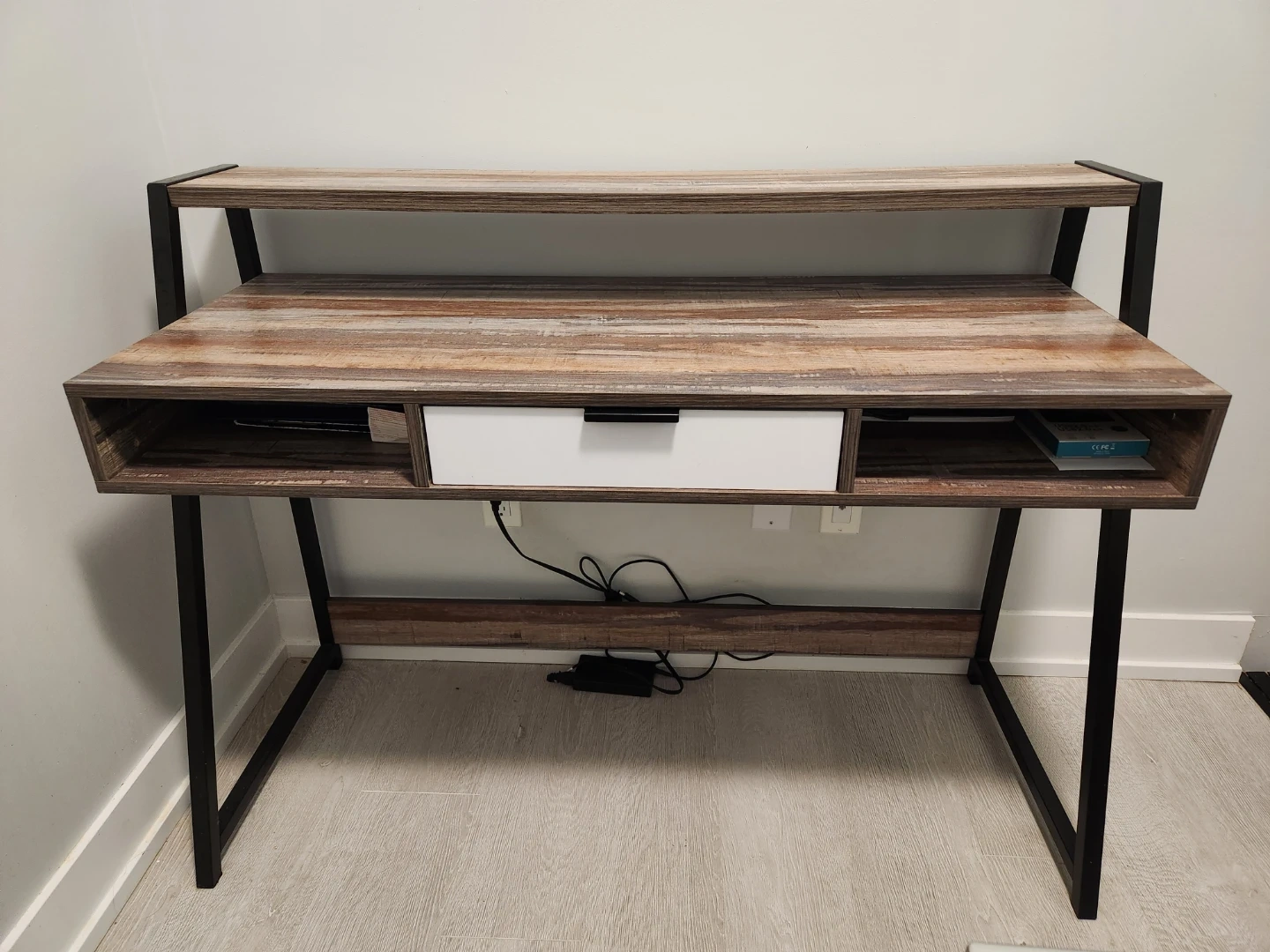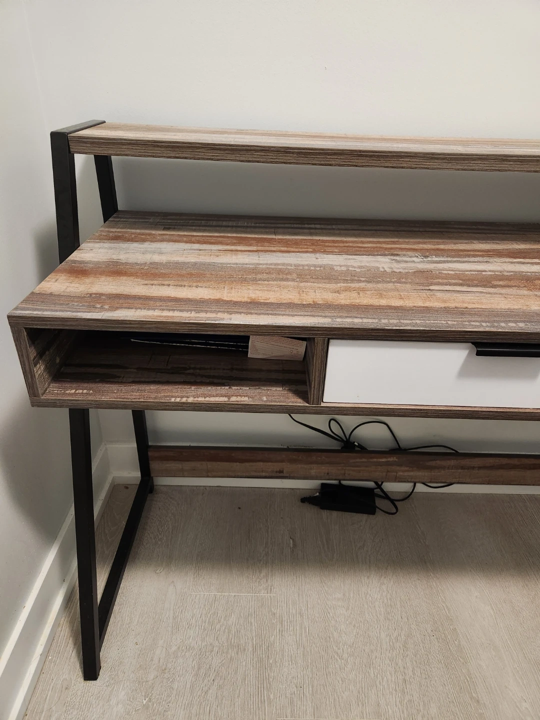 7742-tier office desk with 2 open drawers and 1 centre pullout drawer. Metal legs. Bought from Wayfair Great condition. Used for 1 year Smoke and pet free home $130 Pick up near Leslie + Sheppard
