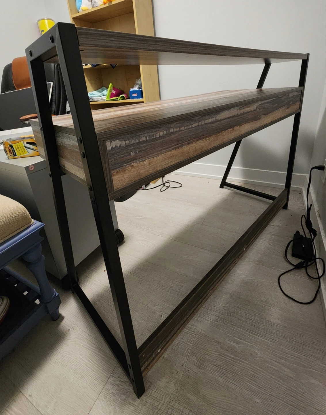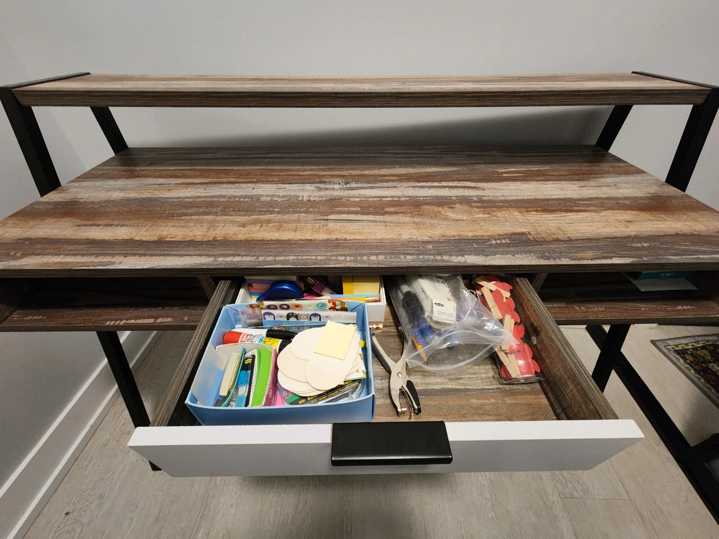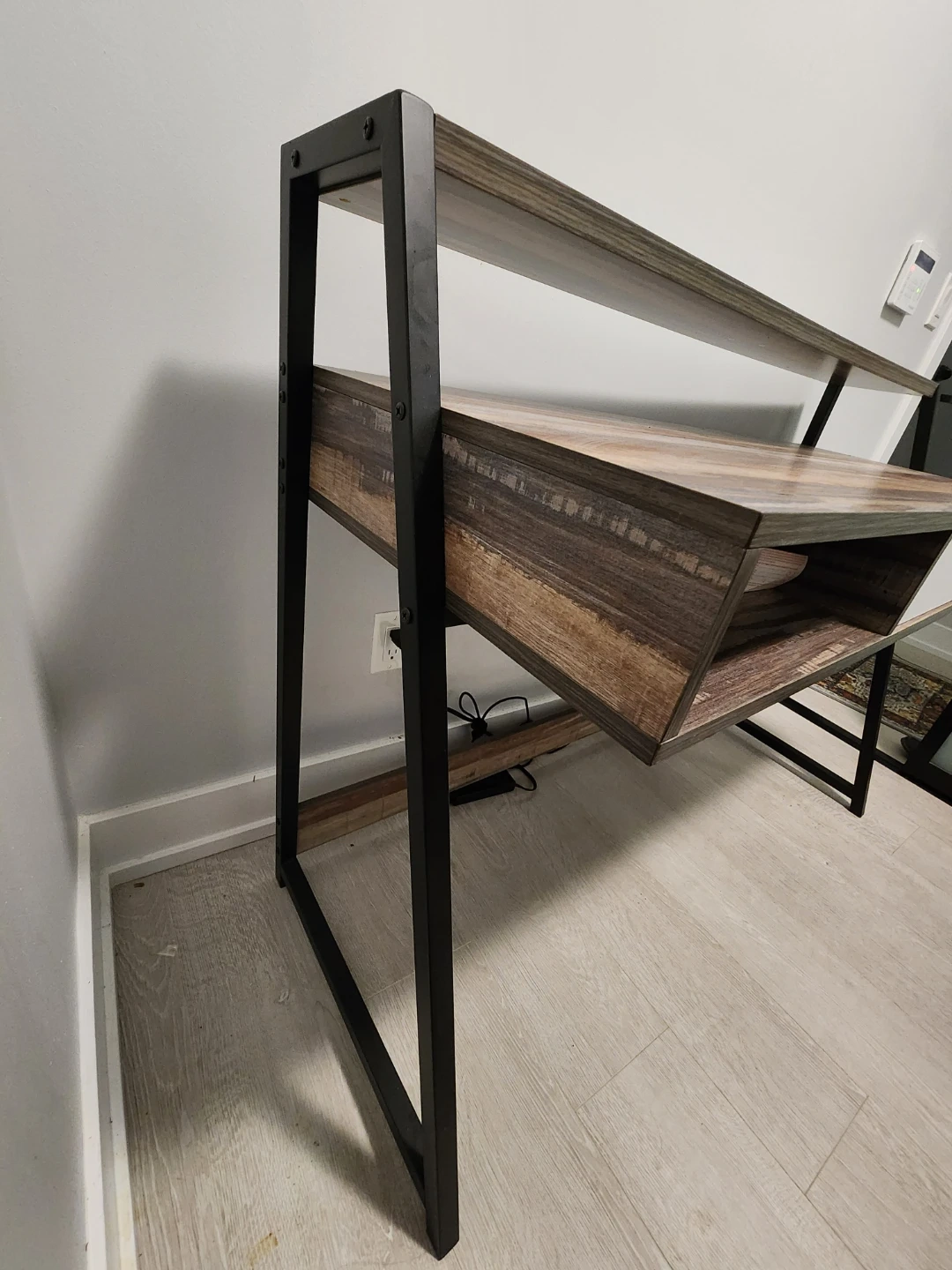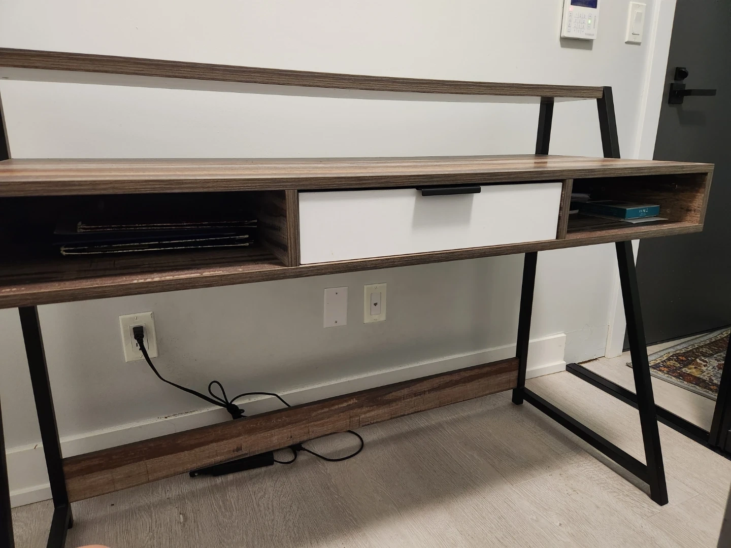7742-tier office desk with 2 open drawers and 1 centre pullout drawer. Metal legs. Bought from Wayfair Great condition. Used for 1 year Smoke and pet free home $130 Pick up near Leslie + Sheppard