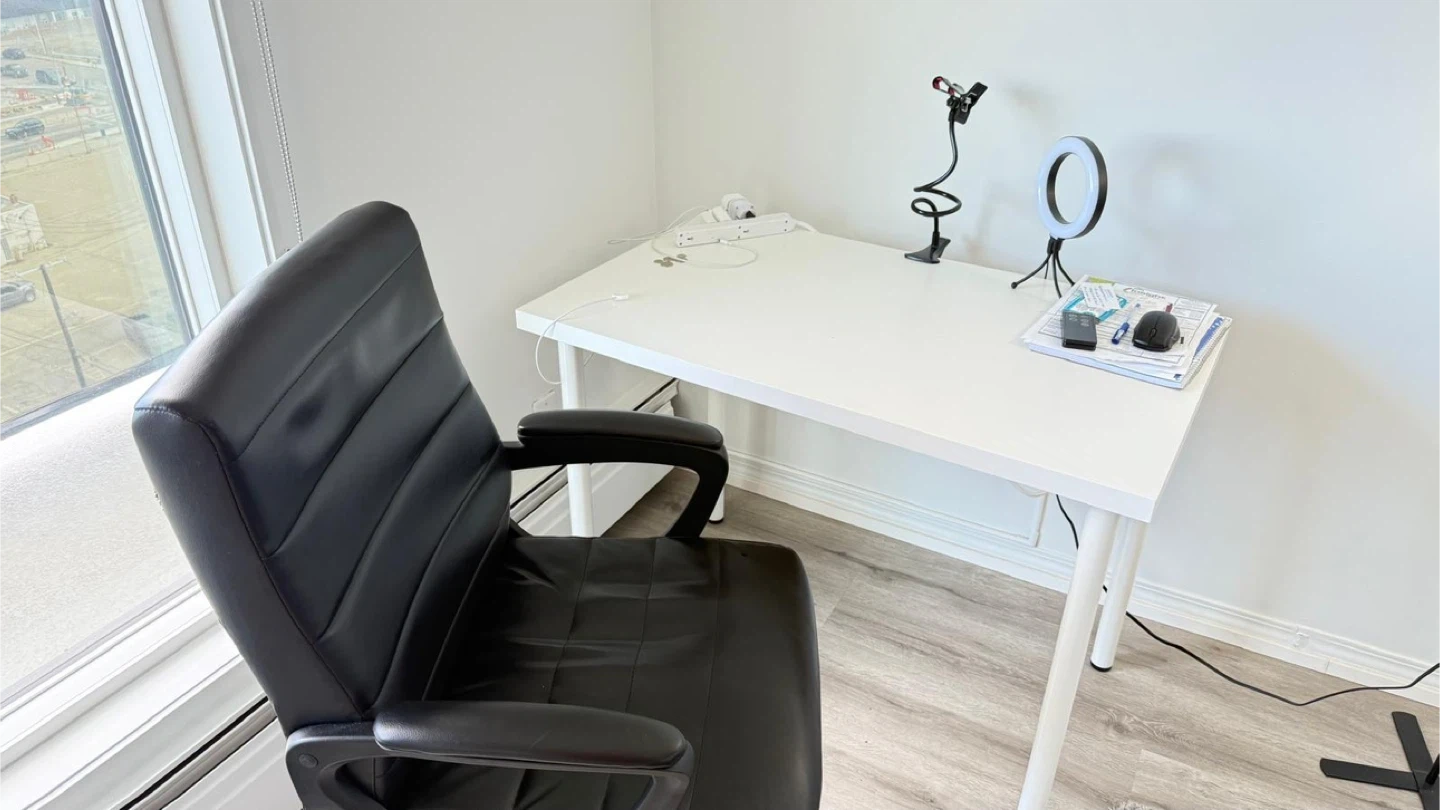 Selling a used office desk and chair set. The desk is white, and the chair is black. Both are in good condition and ready for a new home!