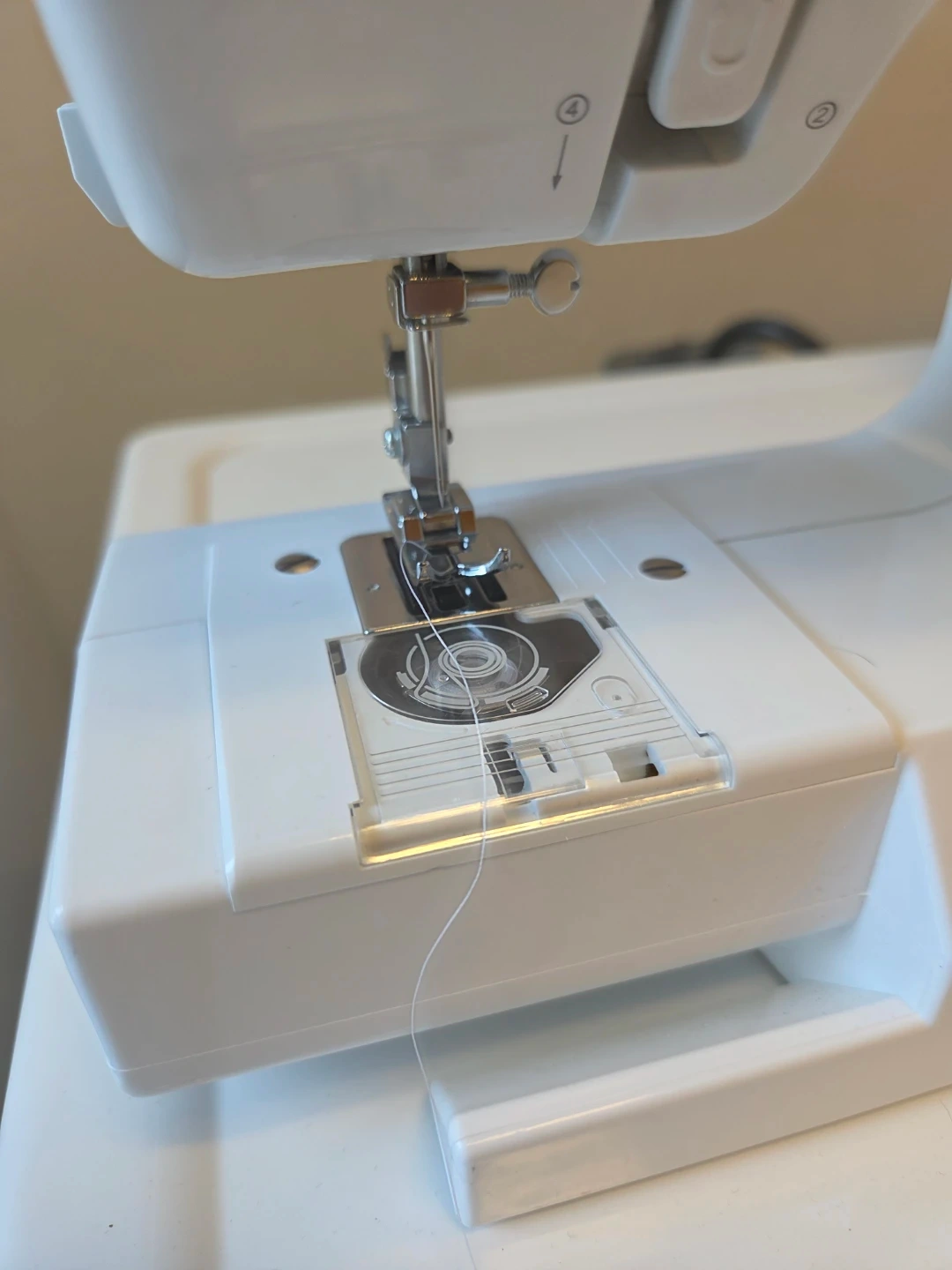 Singer Mending M1000 sewing machine. It has 32 stitch applications and is compact and portable. This machine is great for mending seams and tears with a durable stitch.
