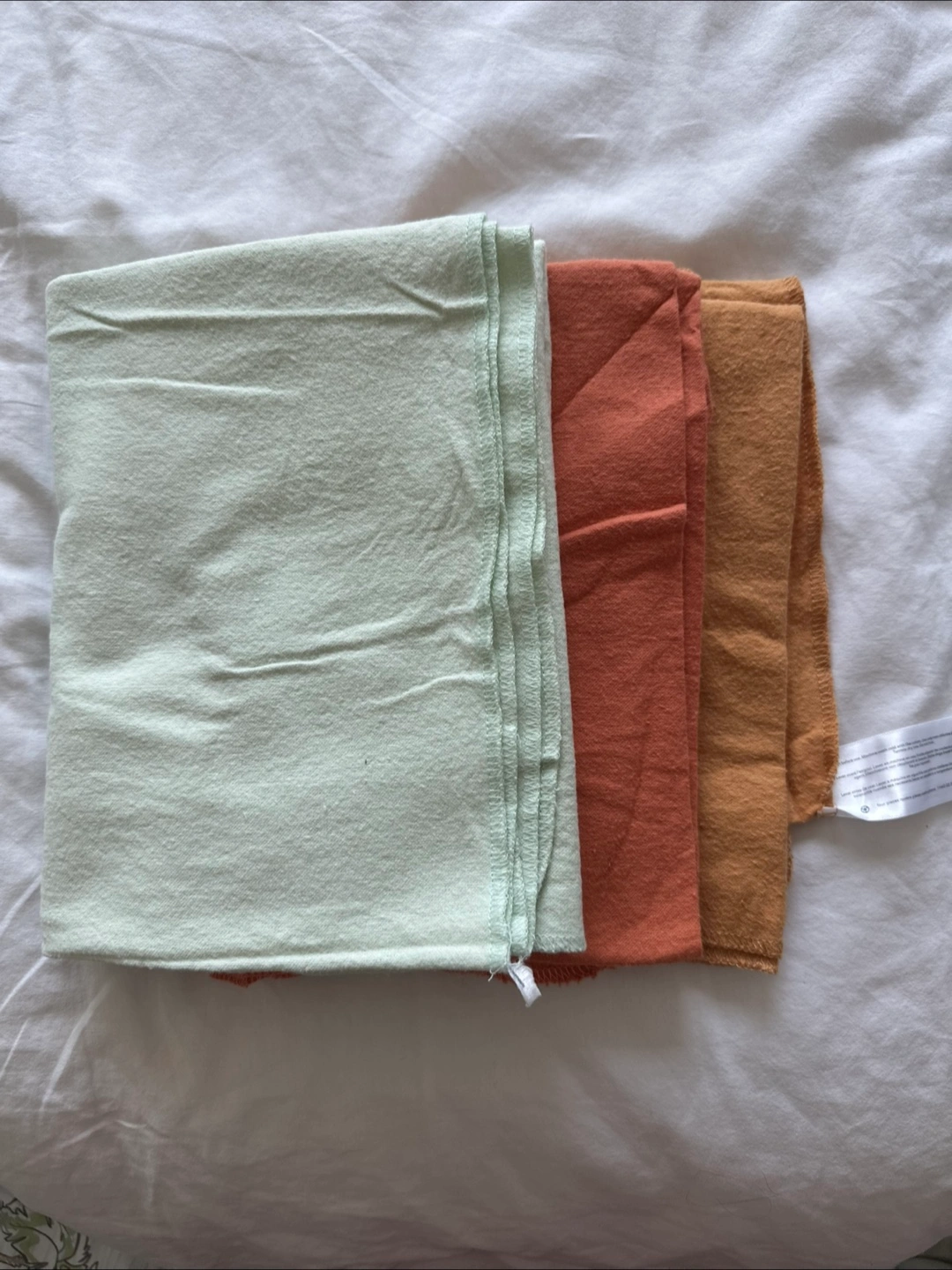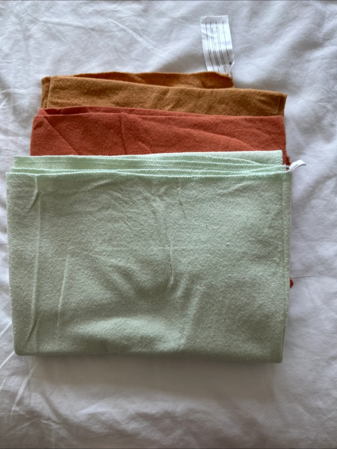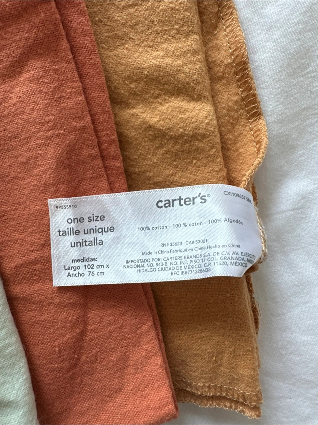 Three Carter's swaddle blankets in pastel colours. Made from 100% cotton. Measurements are 102 cm x 76 cm. Great for keeping baby snug and secure!
