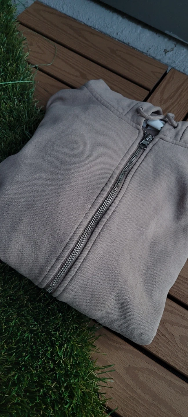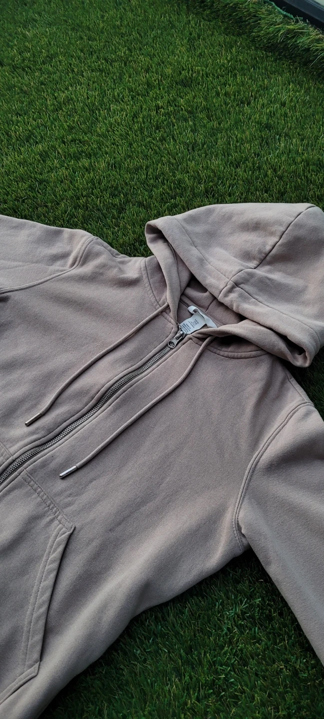 Comfortable H&M light brown zip-up hoodie. It's made with a soft fabric blend. This hoodie is great for casual wear and layering!