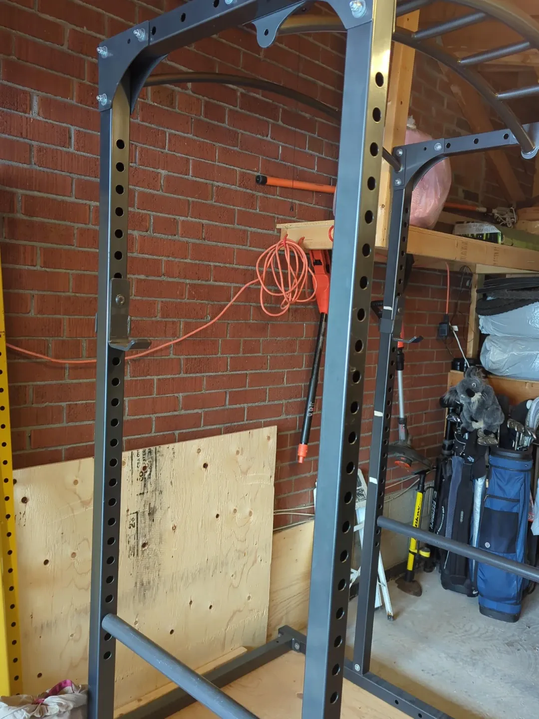 This power rack is great for home workouts. It features a sturdy steel construction and a built-in pull-up bar. Perfect for squats, bench presses, and other strength training exercises.