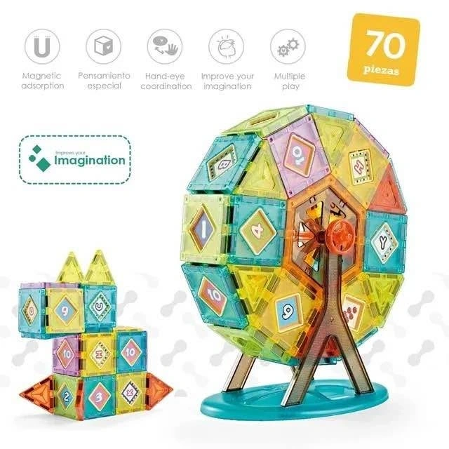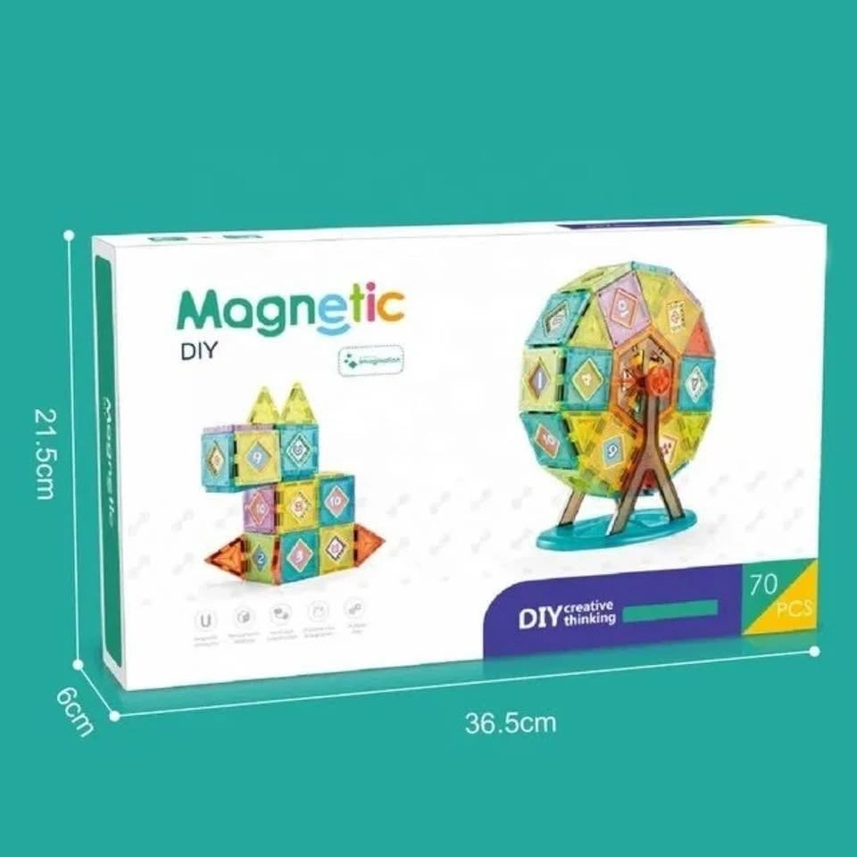 Build, create, and imagine! This DIY Magnetic Building Set with 70 pieces helps kids explore endless creations — from Ferris wheels to towers and cubes! It's a perfect mix of learning and play, designed to enhance creativity, hand-eye coordination, and logical thinking.