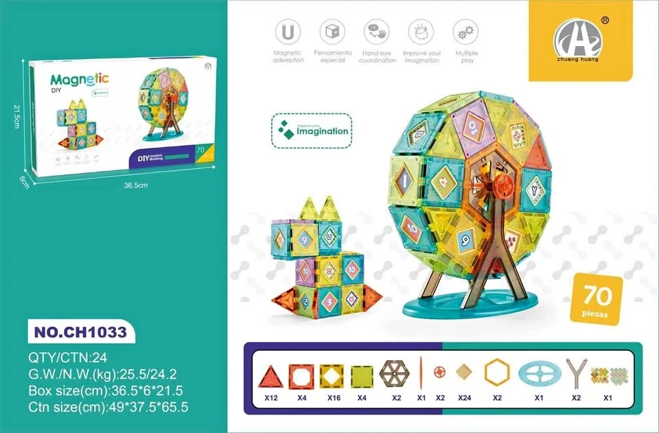 Build, create, and imagine! This DIY Magnetic Building Set with 70 pieces helps kids explore endless creations — from Ferris wheels to towers and cubes! It's a perfect mix of learning and play, designed to enhance creativity, hand-eye coordination, and logical thinking.